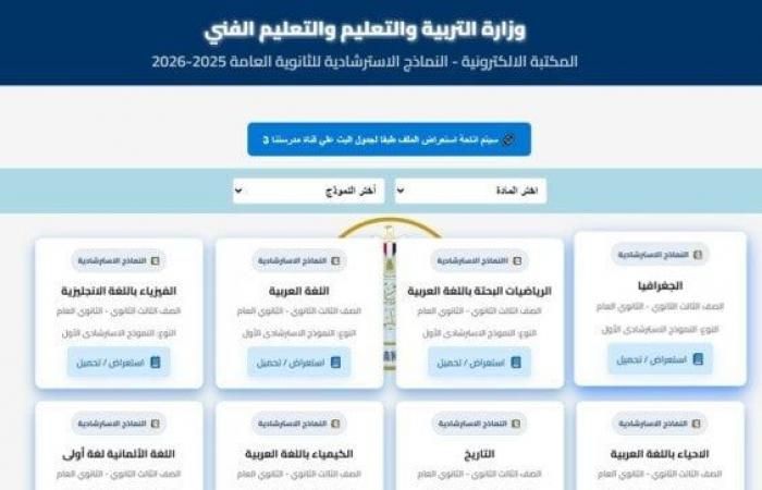 وأكدت وزارة التربية والتعليم، أن الهدف وراء طرح النماذج الاسترشادية للصف الثالث الثانوي 2026 هو مساعدة الطلاب على التحصيل الدراسي وتدريبهم بشكل جيد على أسلوب امتحانات الثانوية العامة 2026.