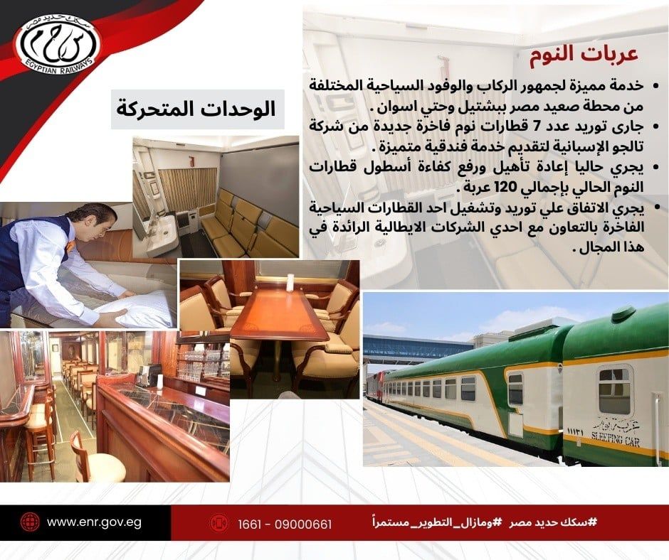 رفع الكفاءة: العمل على إعادة تأهيل 120 عربة نوم من الأسطول الحالي.