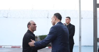الخميس، 12 مارس 2026 08:02 محرص السفير باسم حسن، سفير مصر لدى تونس، على استقبال بعثة فريق الأهلي برئاسة سيد عبد الحفيظ عضو مجلس الإدارة، بعد وصولها إلى مطار قرطاج الدولي بالعاصمة التونسية.