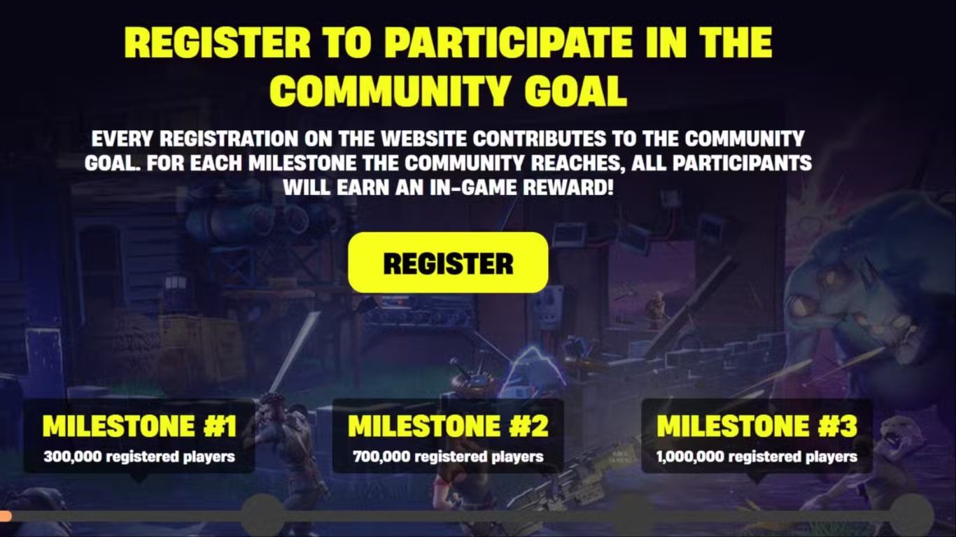 يهدف هذا الحدث المجتمعي إلى خلق حالة من الحماس داخل مجتمع Fortnite قبل إطلاق نمط Save the World بشكل مجاني كما يمنح اللاعبين فرصة الحصول على مكافآت حصرية مقابل مشاركتهم في دعم الحدث والوصول إلى الأهداف المحددة مما يشجع المزيد من اللاعبين على الانضمام إلى الحدث والمساهمة في تحقيق الهدف النهائي المتمثل في تسجيل مليون لاعب قبل موعد الإطلاق الرسمي للنمط.