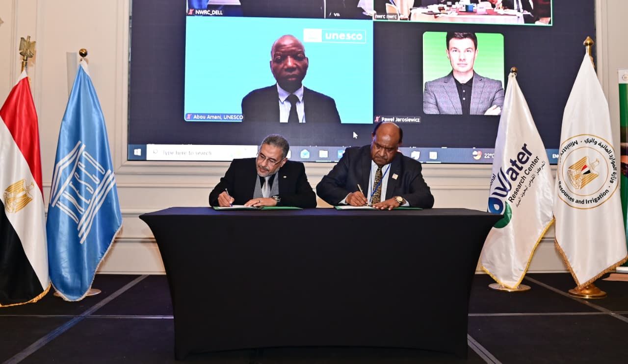 شهد الوزراء مراسم توقيع "إتفاقية كرسى اليونسكو لإدارة وحوكمة المياه العابرة للحدود بالمركز القومى لبحوث المياه" والتي قام بتوقيعها كل من روبرتو بورا المدير الإقليمى لمكتب اليونسكو القاهرة، و الدكتور شريف محمدي رئيس المركز القومي لبحوث المياه.