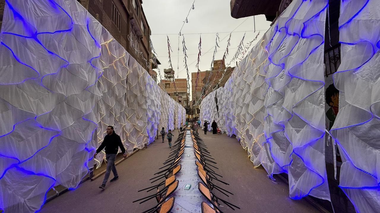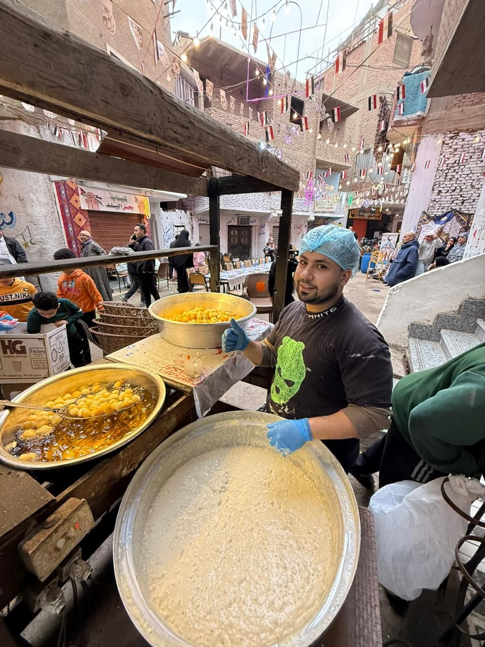 كما شارك الشباب في تعليق الزينة والفوانيس الرمضانية على أعمدة الإنارة والجدران، وتميزت الشوارع برسومات مبهجة وزخارف ملونة كتبها ورسمها شاب من المنطقة، بما في ذلك شخصيات رمضانية محبوبة مثل المسحراتي وبوجي وطمطم، ما أضفى على المكان روح التعاون والإبداع وأصبح كل شارع لوحة فنية تنبض بالفرح.
