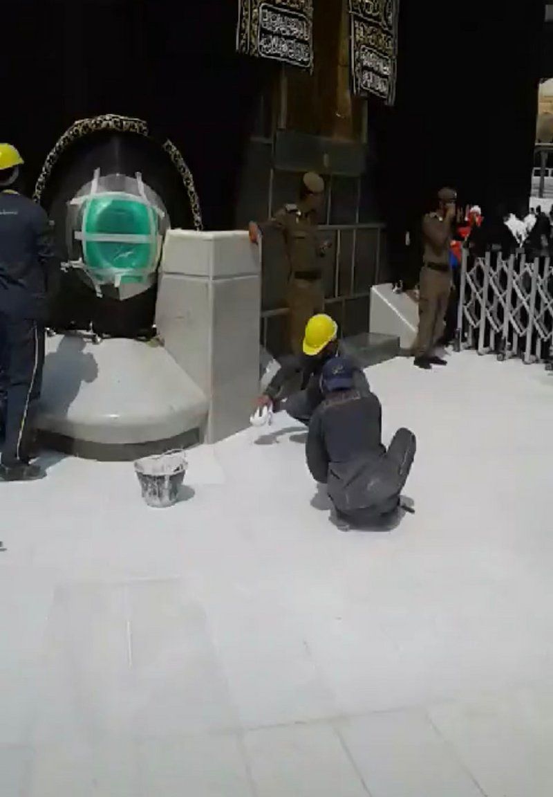 ويتكون الشاذروان من رخام مصقول ثُبّت بعناية، وتوجد فيه حلقات تُربط بها كسوة الكعبة المشرفة لتثبيتها، مما يعكس دقة العناية بالتفاصيل المعمارية المرتبطة بالبيت الحرام.