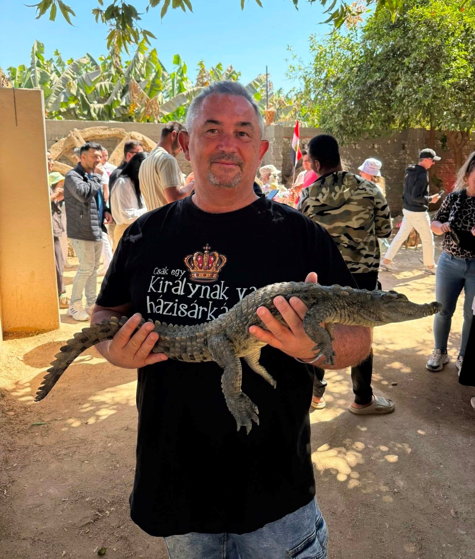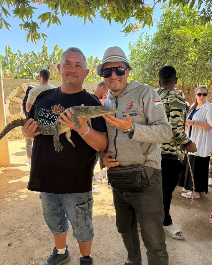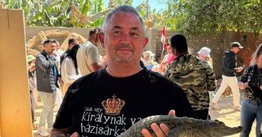 استمتاع أجنبي مع التماسيح فى جزيرة الموز بالأقصر