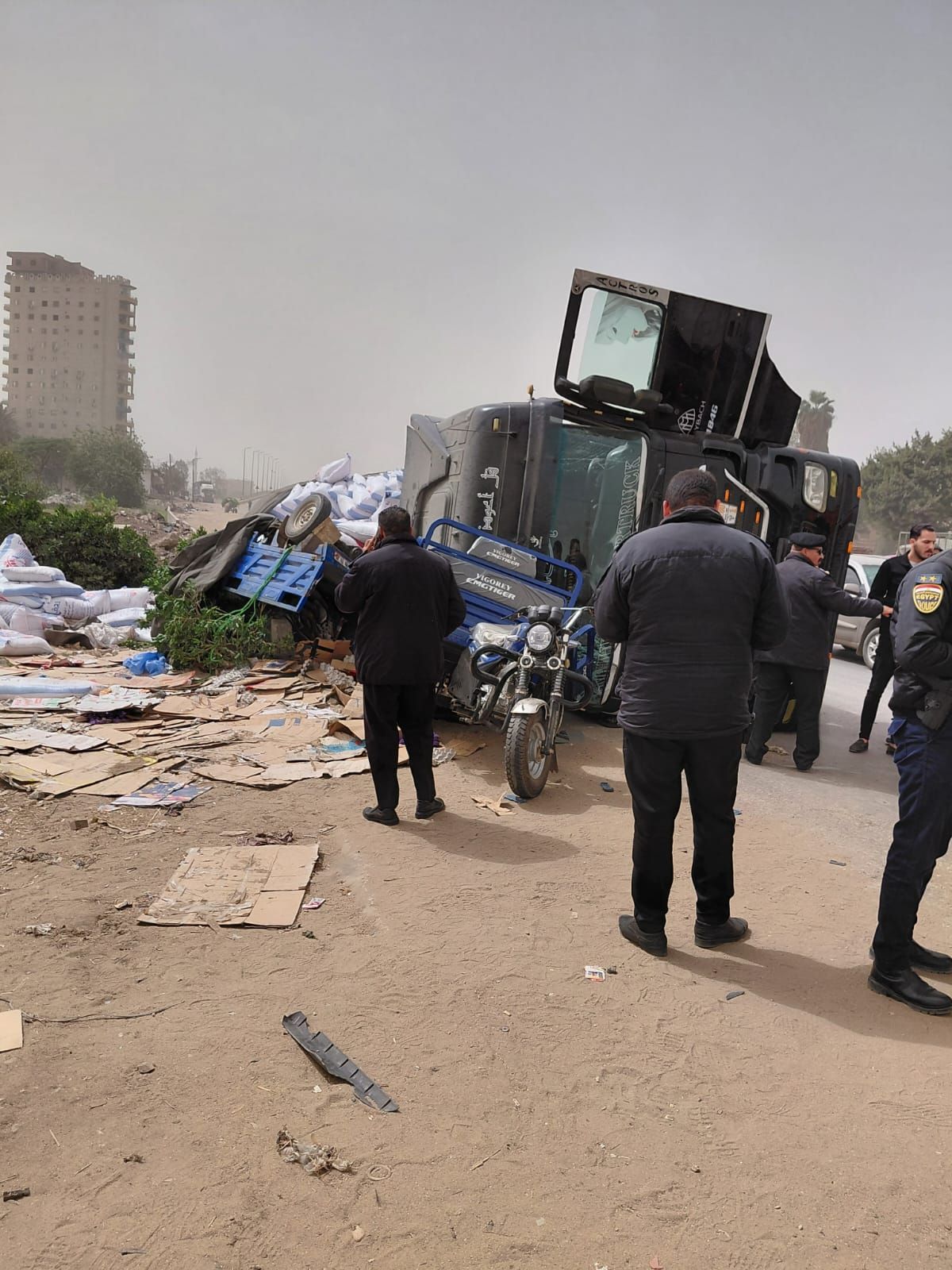 بلاغ للأجهزة الأمنية بالقليوبية بالحادثتلقت مديرية أمن القليوبية، إخطارا من عمليات النجدة، يفيد ورود بلاغ بانقلاب سيارة نقل ثقيل محملة "ردة وأعلاف"، على 2 تروسيكل، على طريق القاهرة الإسكندرية الزراعي، بمنطقة كوبري الشموت دائر ة مركز بنها بمحافظة القليوبية، في الاتجاه القادم إلي بنها.