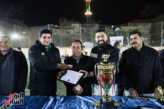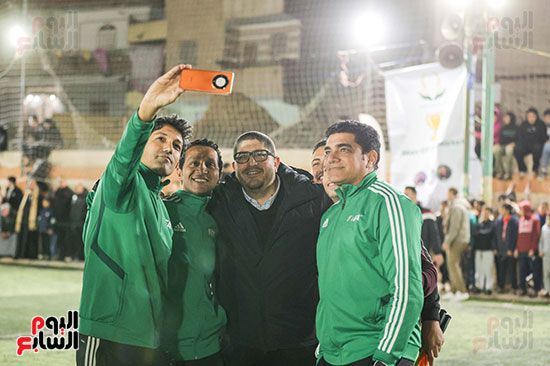 وحرص أهالى القرية على التقاط الصور التذكارية مع الكابتن إبراهيم نور الدين الحكم الدولى، والكأس والفريق الفائز.