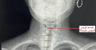 استخراج دبوس من حنجرة فتاة عشرينية بجراحة عاجلةوأوضحت مستشفيات بنها الجامعية، في بيان لها، أنه جاءت الجراحة تحت رعاية الدكتور ناصر الجيزاوي، رئيس جامعة بنها، والدكتور محمد الأشهب عميد كلية الطب ورئيس مجلس إدارة المستشفيات، والدكتور عمرو الدخاخني المدير التنفيذي لمستشفيات جامعة بنها، حيث جرى استقبال فتاة تبلغ من العمر 20 عاما، بقسم الاستقبال والطوارئ بالمستشفي، تعاني من جسم غريب عالق في الحنجرة، وتعاني من آلام شديدة في الرقبة وصعوبة حادة في التنفس.