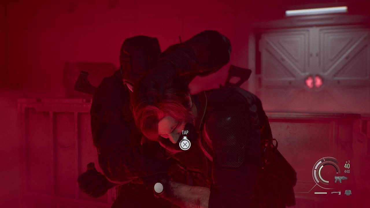 نعرف ما تريد تسميته، لكن لنطلق عليه الآن “القائد”. يستخدم هذا الرئيس مهارته في القتال عن قرب (CQC)، وهناك عدة سلاسل QTE أثناء المعركة عندما يمسك ليون بفكّه وخلف رأسه، وإذا فشلت، يقوم القائد بحركة إنهاء أيقونية.