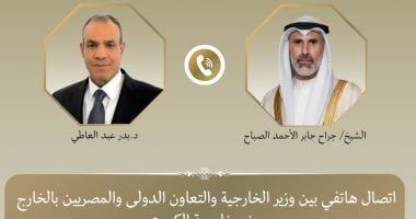 جاء ذلك خلال الاتصال الهاتفى بين بدر عبد العاطي وزير الخارجية والتعاون الدولي والمصريين بالخارج، والشيخ جراح جابر الأحمد الصباح وزير خارجية دولة الكويت الشقيقة ، للتشاور وتنسيق المواقف إزاء التطورات الأمنية المتسارعة التي تعصف بالمنطقة.