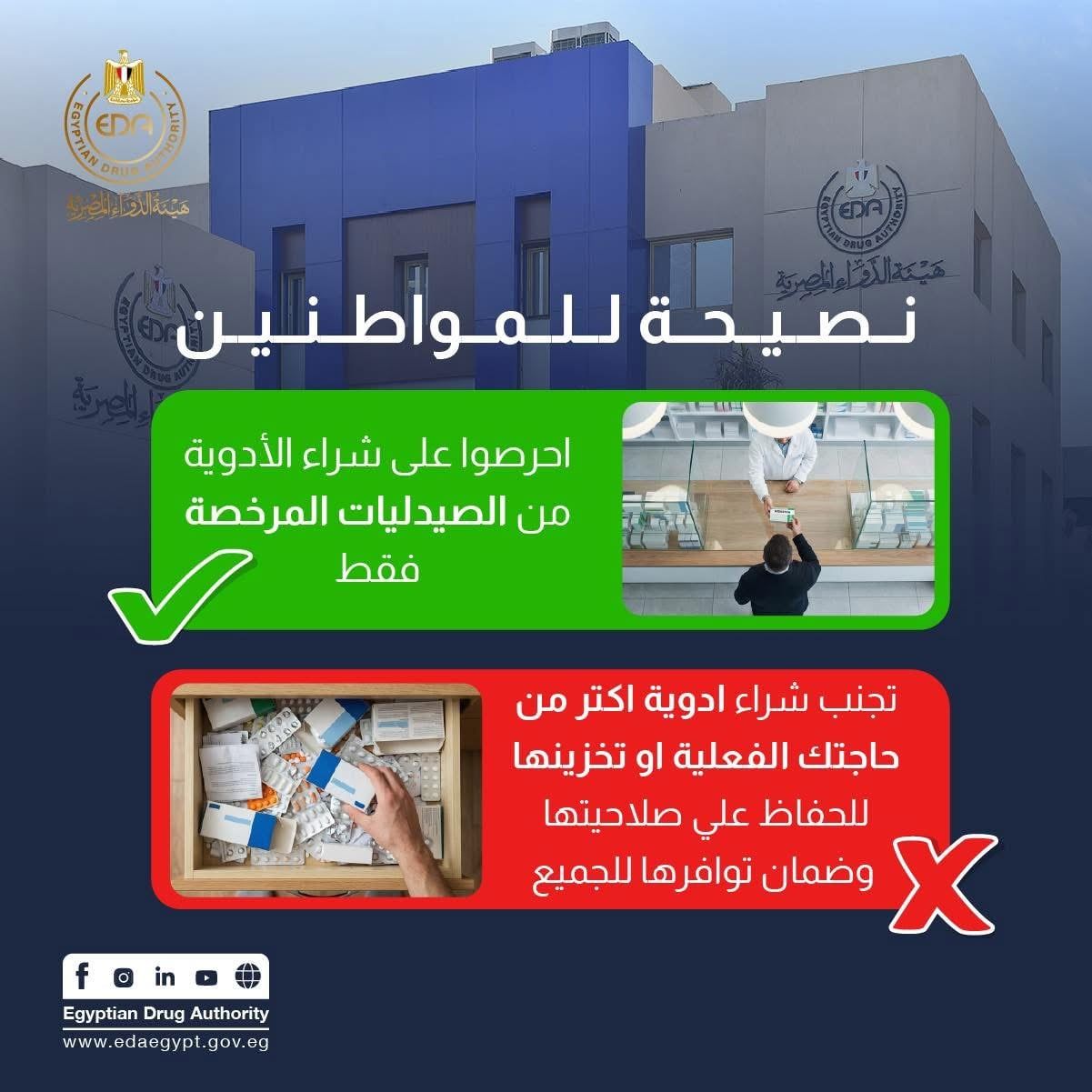ودعت الهيئة المواطنين إلى عدم تخزين الأدوية دون حاجة، مؤكدة أن تخزين الأدوية بشكل غير ضروري قد يؤدي إلى حدوث نقص مؤقت في بعض الأصناف، ما يؤثر على المرضى الذين يحتاجون إليها بشكل فعلي.