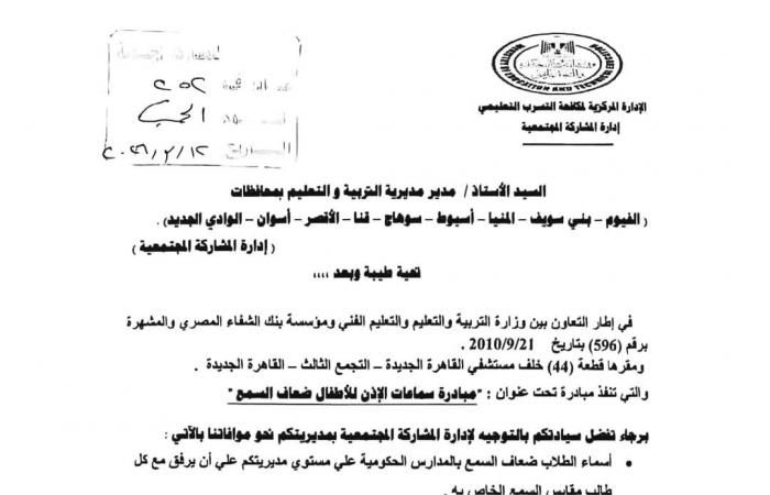 خاطبت الإدارة المركزية مديري مديريات التربية والتعليم في محافظات: الفيوم، بني سويف، المنيا، أسيوط، سوهاج، قنا، الأقصر، أسوان، والوادي الجديد، لحصر أسماء الطلاب المستفيدين من المبادرة، مع ضرورة إرفاق مقياس السمع الخاص بكل طالب لضمان استهداف المستحقين بدقة.