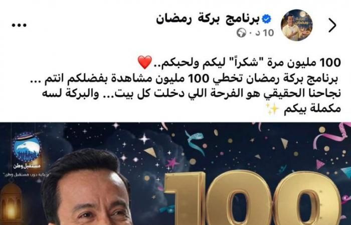 نجاح كاسح.. «بركة رمضان» يحقق 100 مليون مشاهدة على صفحة البرنامج على فيسبوك
