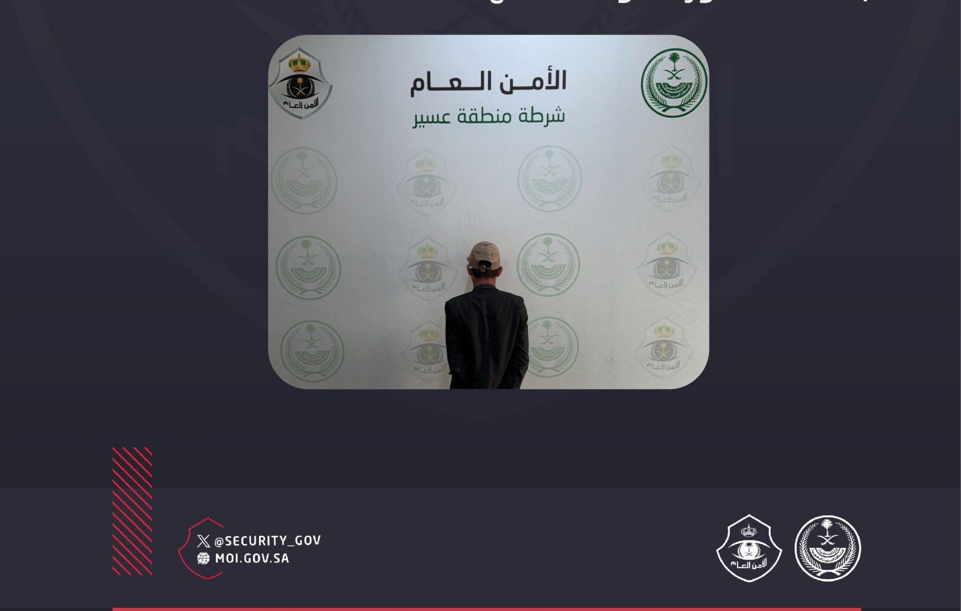 ضبطت شرطة منطقة عسير مقيمًا من الجنسية اليمنية لممارسته التسول، وجرى إيقافه واتخاذ الإجراءات النظامية بحقه.
