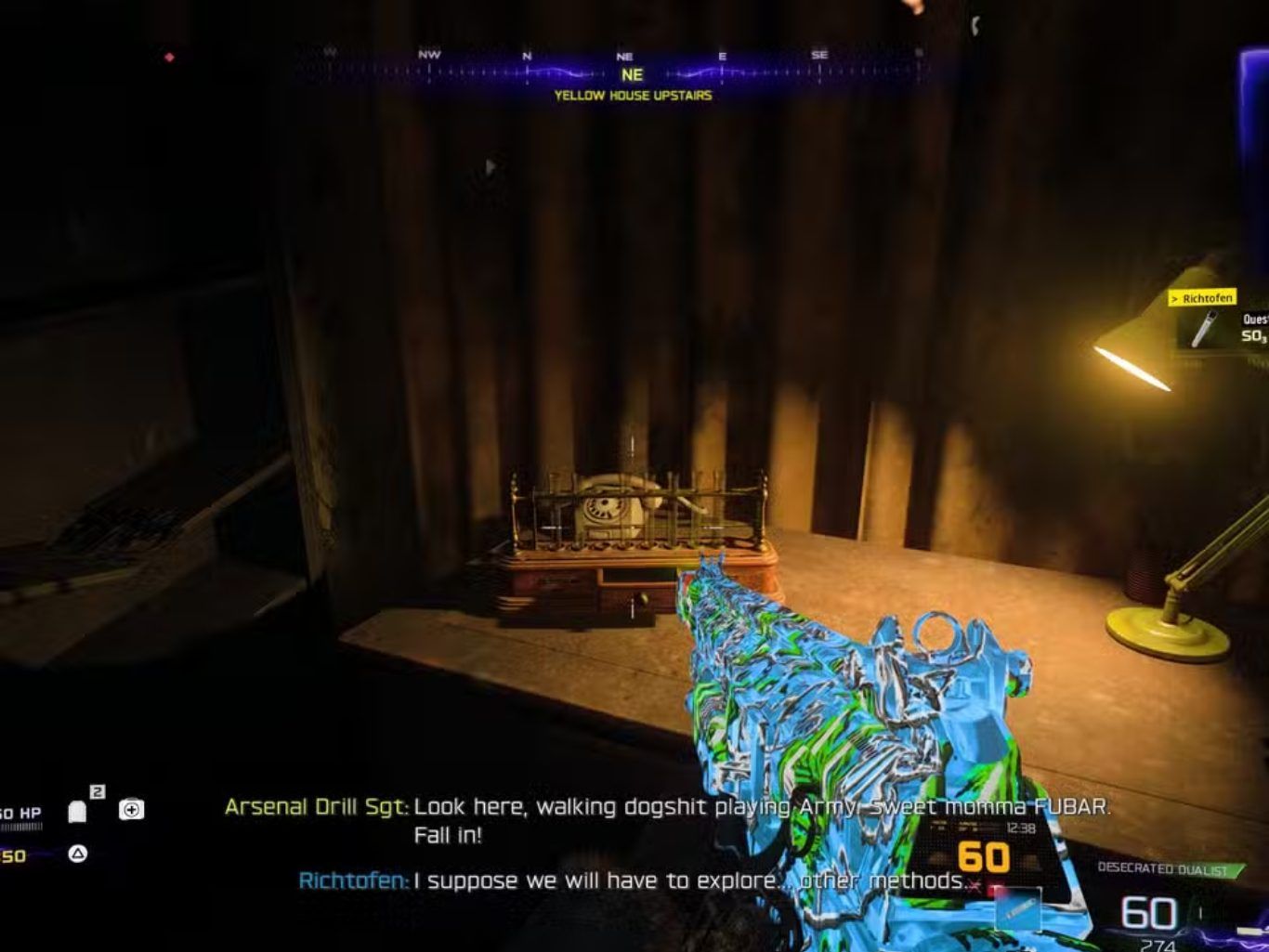 تبدأ هذه المرحلة داخل منطقة Destroyed Nuketown حيث يجب التوجه إلى الطابق العلوي من المنزل الأصفر الموجود في الخريطة وعند الدخول إلى الغرفة العلوية سيجد اللاعب مكتبًا موضوعًا بالقرب من الجدار الشرقي للغرفة وعلى هذا المكتب توجد مجموعة من القوارير الزجاجية التي تحتوي على مواد مختلفة ويجب التفاعل مع هذه القوارير للحصول على زجاجة تعرف باسم SO3 bottle وهي إحدى الأدوات الضرورية التي ستستخدم لاحقًا في هذه المرحلة من المهمة.