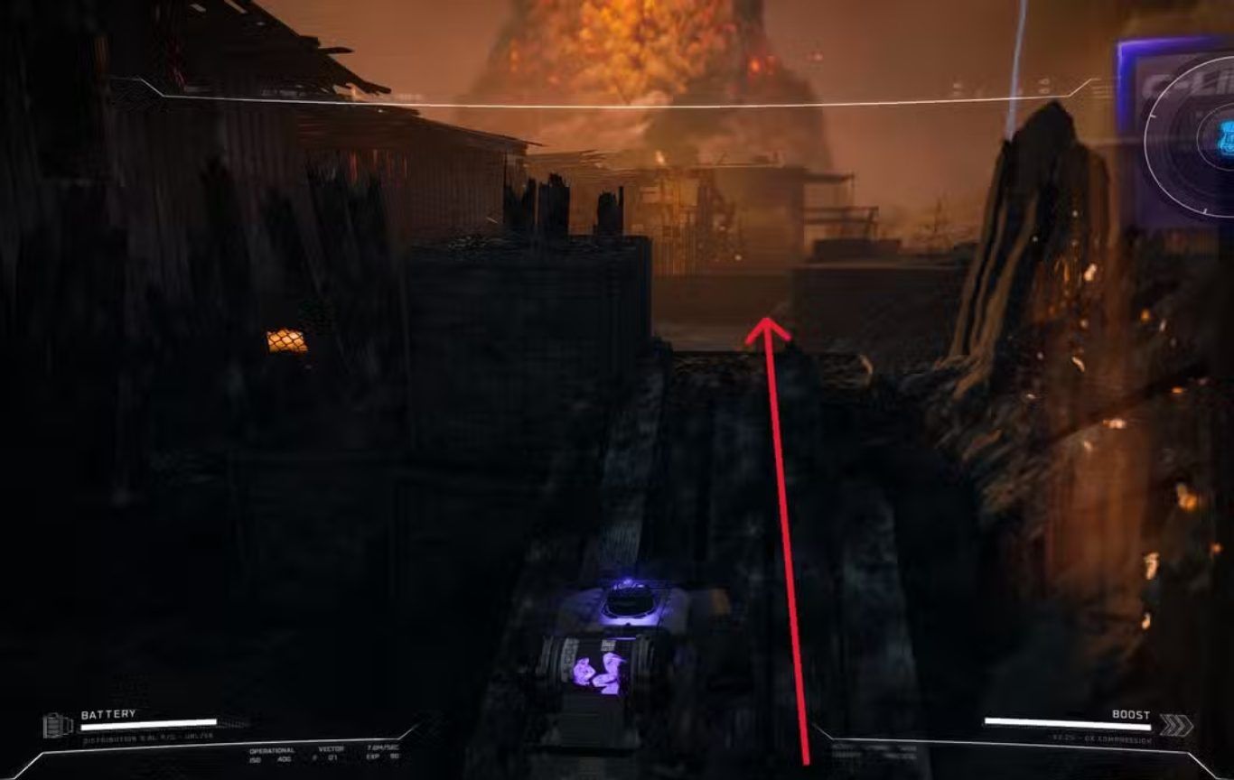 بعد استخدام المنحدر والخروج من حدود المسار الرئيسي داخل الخريطة سيجد اللاعب مجموعة من الصناديق المتراكمة التي تعيق الطريق ويجب توجيه المركبة ARC XD للقفز فوق هذه الصناديق باستخدام الزخم الناتج عن الحركة ثم الاستمرار في التقدم عبر الممر الضيق الذي يقود إلى المنطقة الخلفية من أحد المباني المغلقة داخل Destroyed Nuketown.