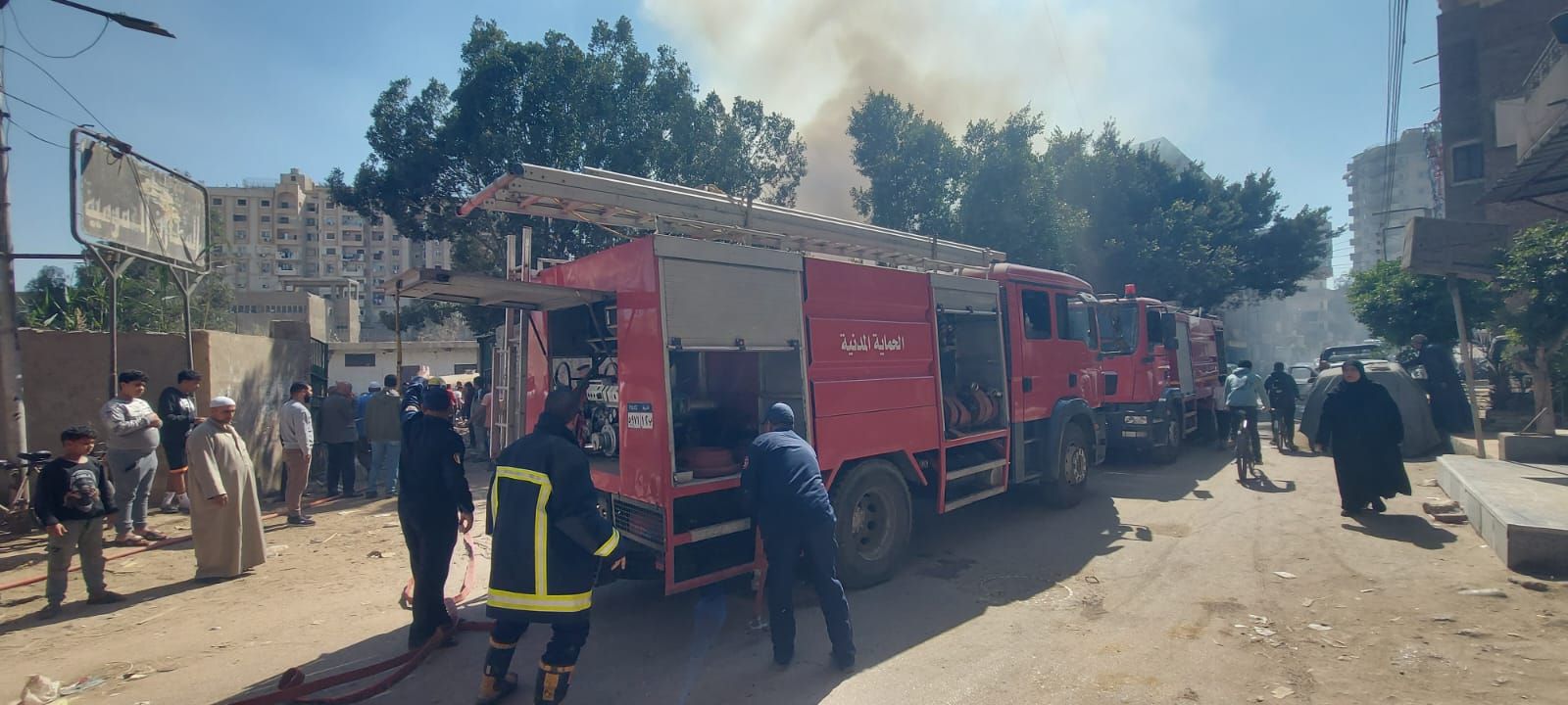 سيارات الإطفاء بموقع الحريق