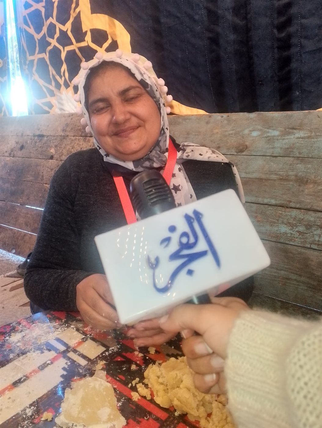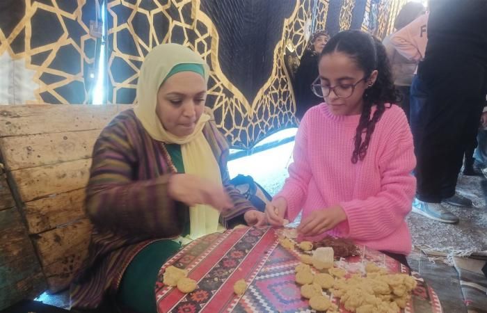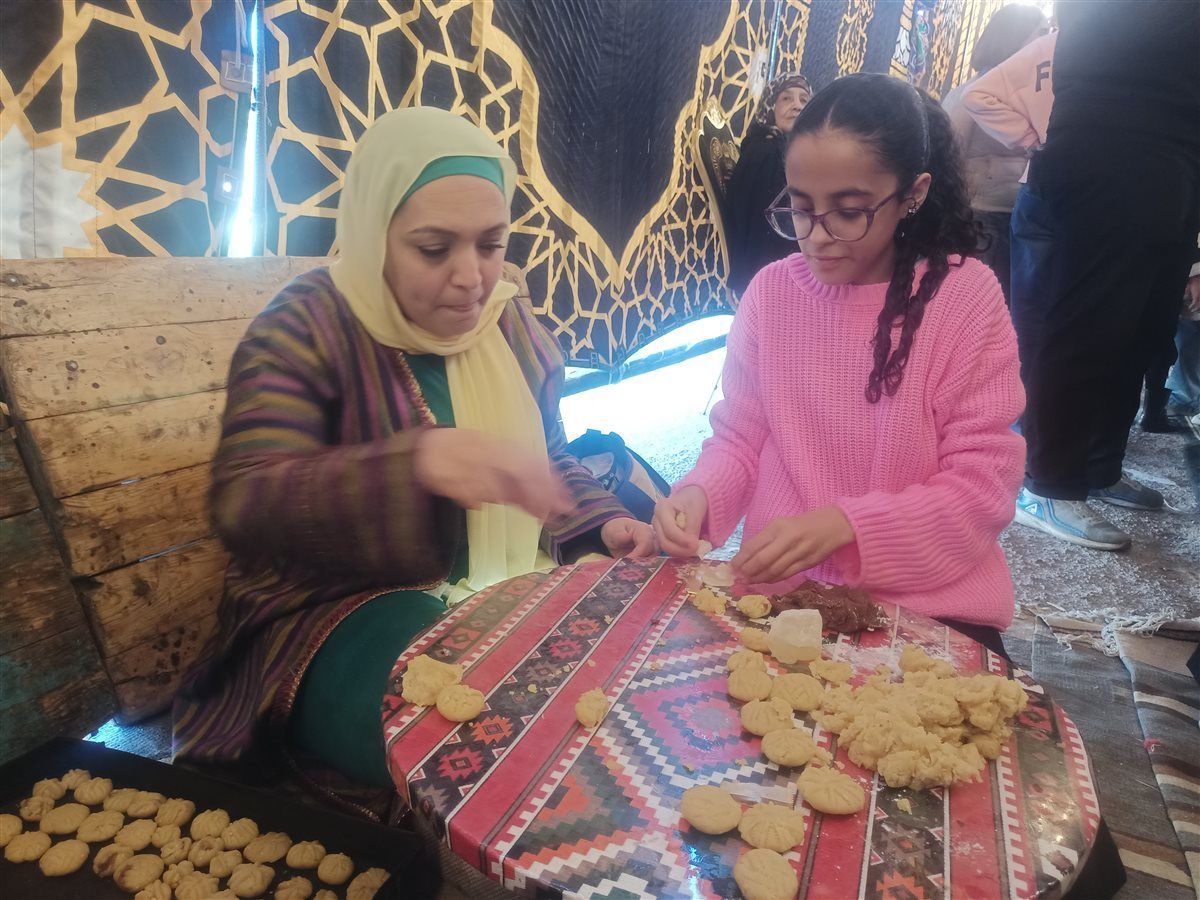 وبداية من دخولك الشادر، تنبعث روائح الكعك والبسكويت الذي قامت بتحضير المواد الخاصة به أحدهن والأخرى قامت بعجنه وصولا للاخيرة التي خبزته بكل حب وسعادة دون عناء وهي على علم بأنها تشارك في صنع الكعك للمحتاجين من أهل المنطقة وغير قادرين على شراء حلويات العيد الخاصة من الكعك والبسكويت.