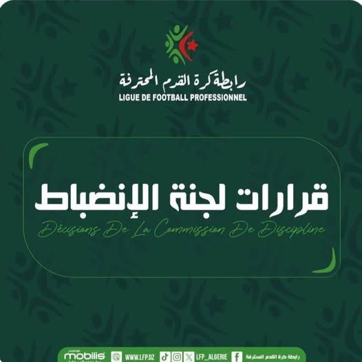 أصدرت لجنة الانضباط التابعة للرابطة المحترفة لكرة القدم قراراتها في القضايا المطروحة أمامها بخصوص مباريات الجولة الماضية من البطولة الوطنية، كان أبرزها القرار الذي يتعلق بمهاجم شبيبة القبائل، بلال مسعودي.