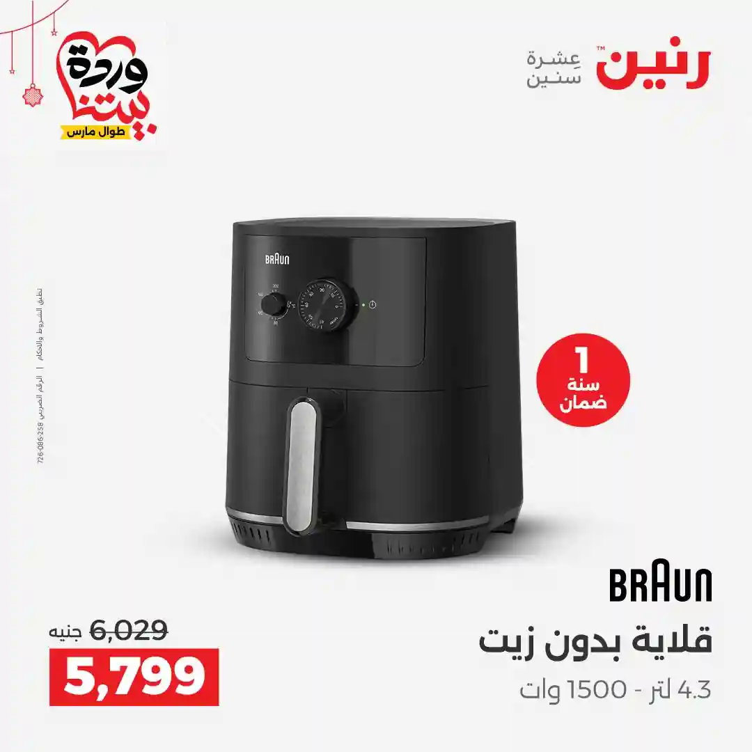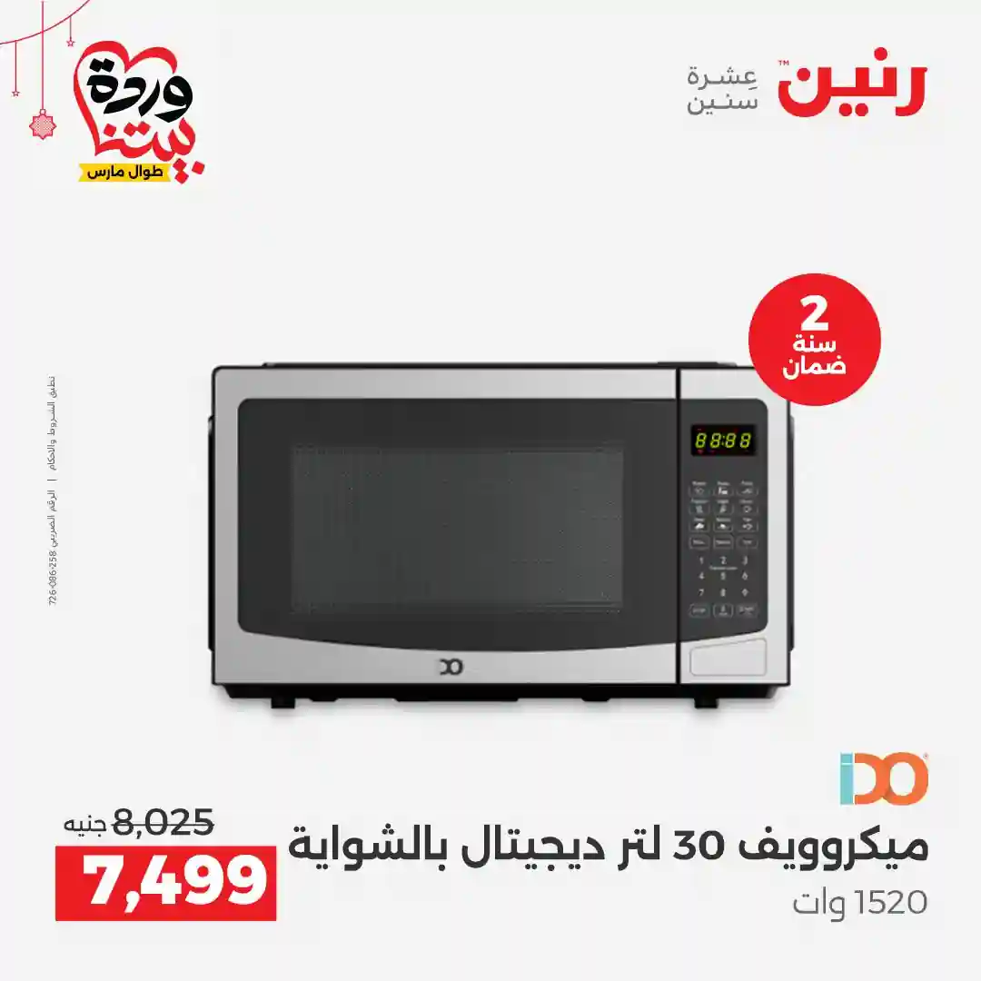 تسرى عروض رنين من يوم الخميس للسبت 19 – 20 – 21 مارس 2026 للاجهزة الكهربائية بجميع الفروع