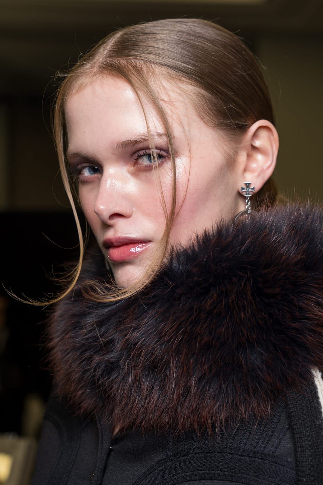 تعتمد هذه التسريحة على الشعر المصفف بأسلوب ناعم ومشدود إلى الخلف، حيث تم سحب الخصلات بسلاسة نحو مؤخرة الرأس لتشكيل كعكة منخفضة مرتبة تمنح الإطلالة طابعاً راقياً وبسيطاً في آن واحد. يبرز هذا الأسلوب لمعان الشعر وترتيبه بدقة، ما يعكس أناقة كلاسيكية مستوحاة من عروض الأزياء الراقية.