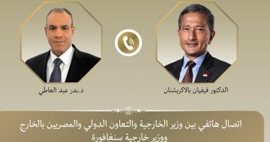 تلقى د. بدر عبد العاطي وزير الخارجية والتعاون الدولي والمصريين بالخارج، اتصالا هاتفيا من الدكتور فيفيان بالاكريشنان وير خارجية سنغافورة اليوم الأربعاء، حيث بحث الجانبان سبل تعزيز العلاقات الثنائية ومستجدات الأوضاع الإقليمية.