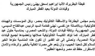 بطريرك الكاثوليك يهنئ الرئيس السيسي وقيادات الدولة بعيد الفطر