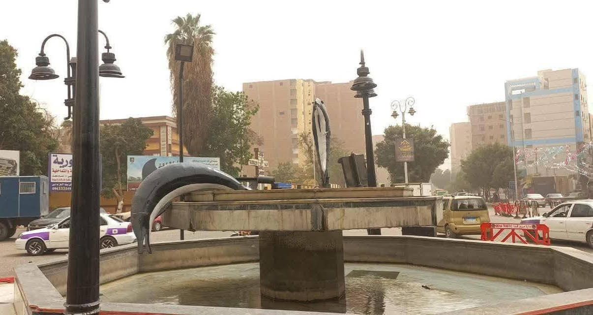 تعرض مجسم الدولفين فى أشهر ميادين محافظة قنا للسقوط وذلك بسبب موجة الطقس السيئ التي ضربت محافظة قنا بشكل مفاجئ.