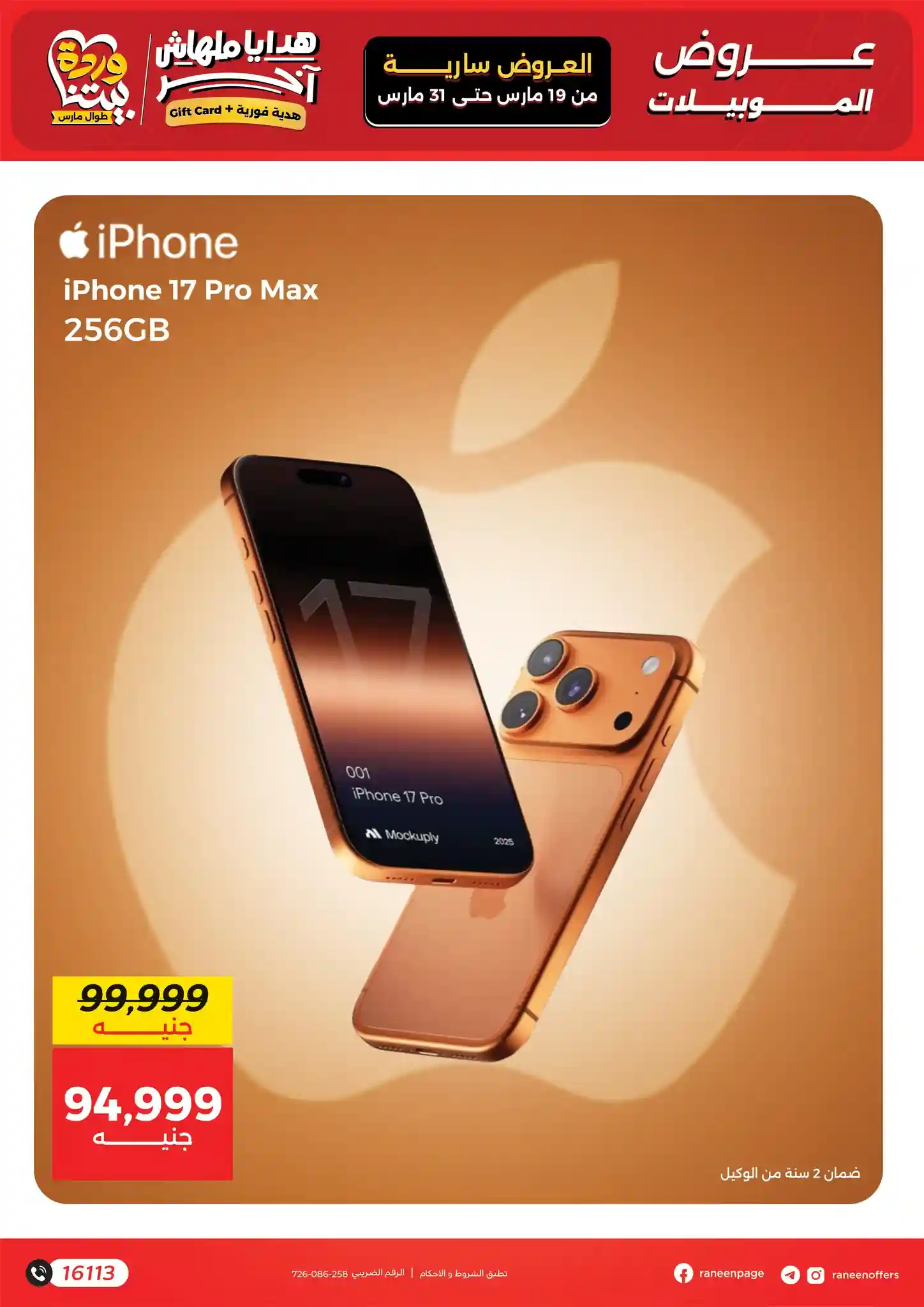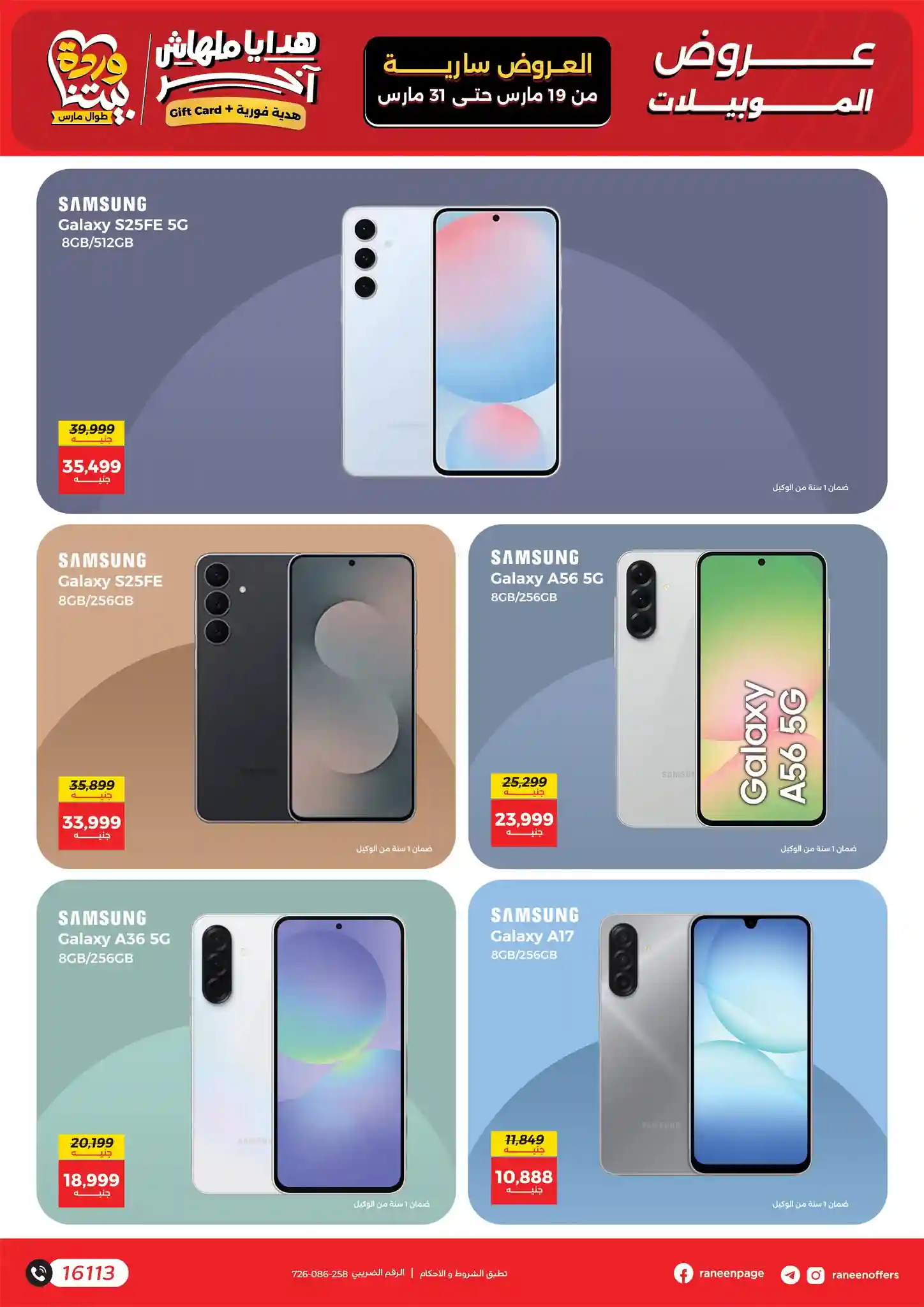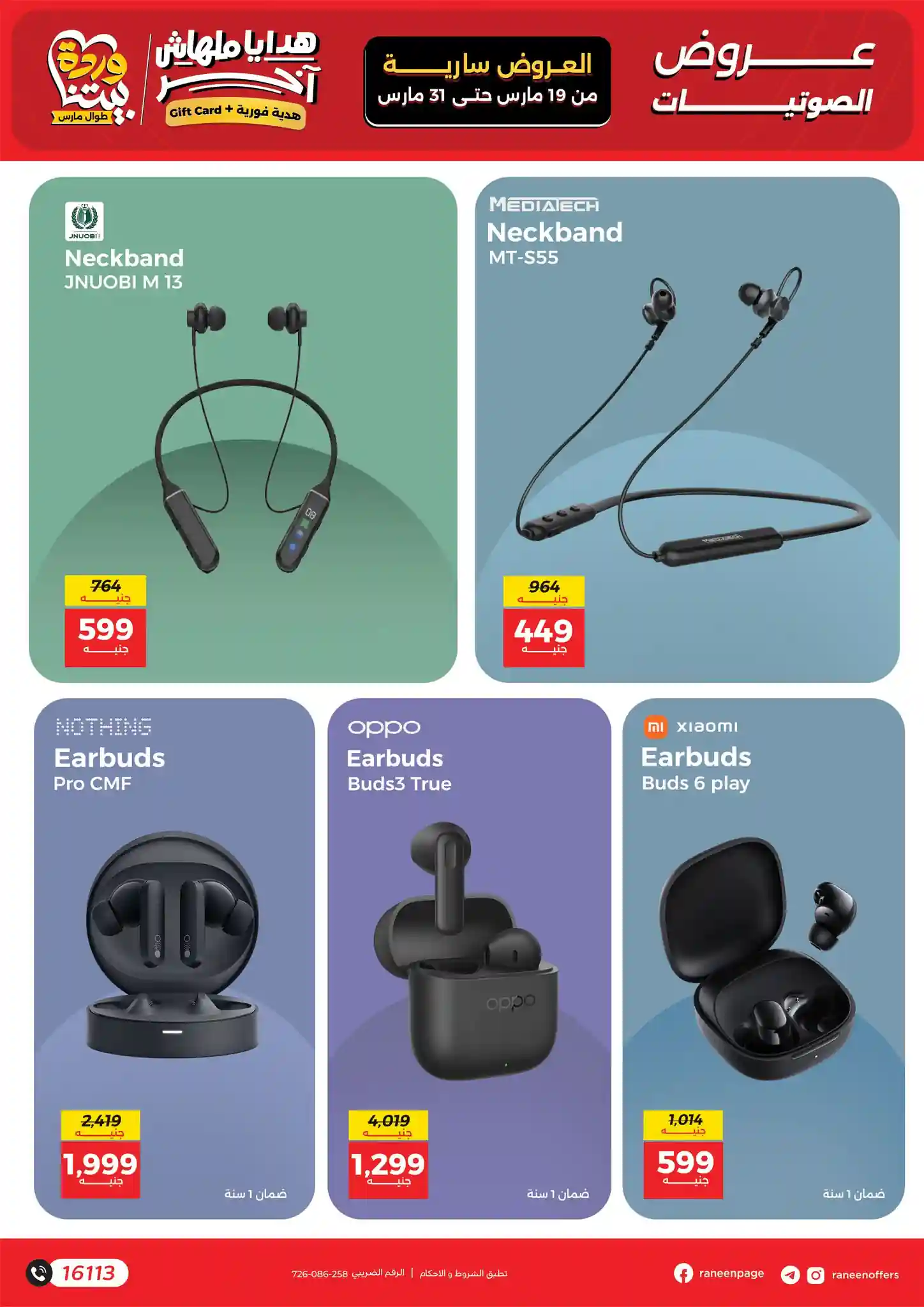 تسرى عروض رنين من يوم 19 مارس حتى 31 مارس 2026 خصومات الموبايلات و الاكسسوارات بجميع الفروع