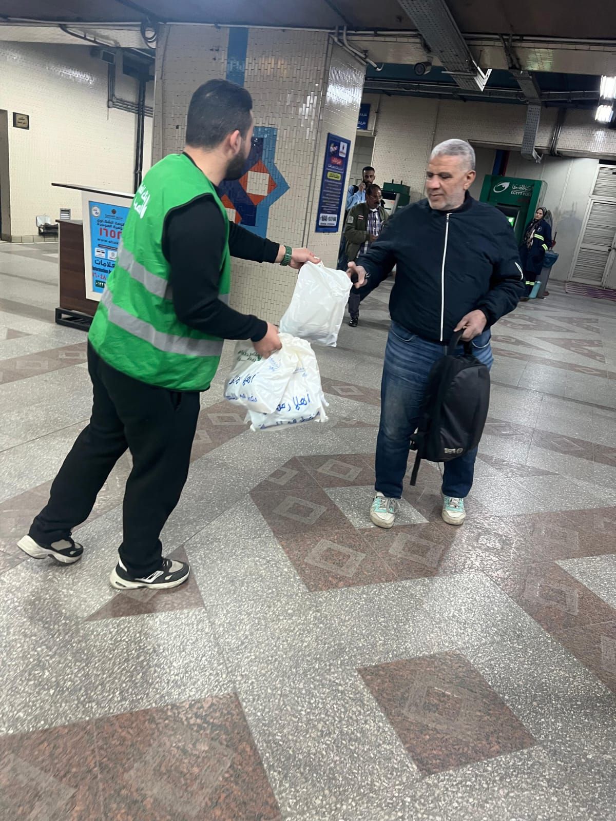 تفاصيل الوجبات وخريطة التوزيع بالمحطاتأوضحت شركة المترو في بيانها الرسمي، أن الوجبة الخفيفة تضمنت (زجاجة مياه، عصير، وبسكويت)، حيث تم توزيع 5000 وجبة يومياً على الركاب المتواجدين داخل المحطات والقطارات وقت أذان المغرب. وتركز التوزيع في المحطات التبادلية والأكثر ازدحاماً لضمان وصول الخدمة لأكبر عدد من الصائمين، وشملت محطات: (الشهداء، أنور السادات، العتبة، جمال عبد الناصر، وكلية الزراعة) بالخطين الأول والثاني.