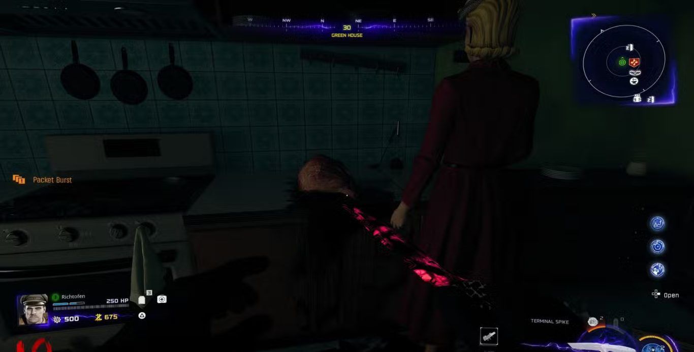 داخل المطبخ يمكن ملاحظة وجود دمية عرض تقف بالقرب من إحدى الزوايا. بجوار هذه الدمية مباشرة يوجد لوح كبير من اللحم موضوع على أحد الأسطح داخل الغرفة. يمثل هذا العنصر قطعة Meat التي يمكن للاعب التفاعل معها والتقاطها لتضاف إلى العناصر التي جمعها أثناء استكشاف الخريطة.