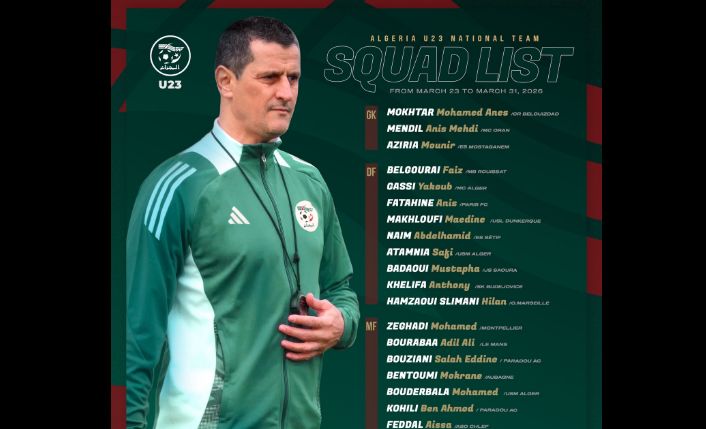 كشف مدرب المنتخب الوطني لأقل من 23 سنة، رفيق صايفي، عن قائمة اللاعبين المعنيين بالدخول في تربص تحضيري يتخلله إجراء مواجهتين وديتين أمام منتخب الكونغو الديمقراطية، وذلك خلال فترة التوقف الدولي المقبلة.