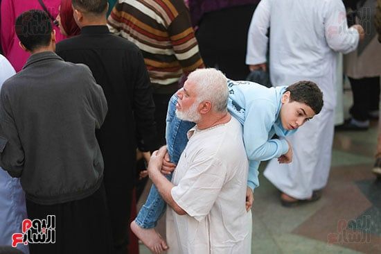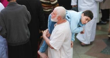 الجمعة، 20 مارس 2026 07:27 صفي لقطة إنسانية حركت مشاعر المصلين وجسدت أسمى معاني الوفاء العائلي، رصدت عدسة "اليوم السابع" مشهداً مؤثراً لجد يحمل حفيده من ذوي الاحتياجات الخاصة، الذي لا يقوى على المشي، خلال أداء صلاة عيد الفطر المبارك بمسجد عمرو بن العاص بالقاهرة. وحرص الجد على اصطحاب حفيده وحمله طوال الوقت لإدخال البهجة على قلبه ومشاركته أجواء الصلاة والاحتفال، ضارباً أروع الأمثلة في الرعاية والحنان.