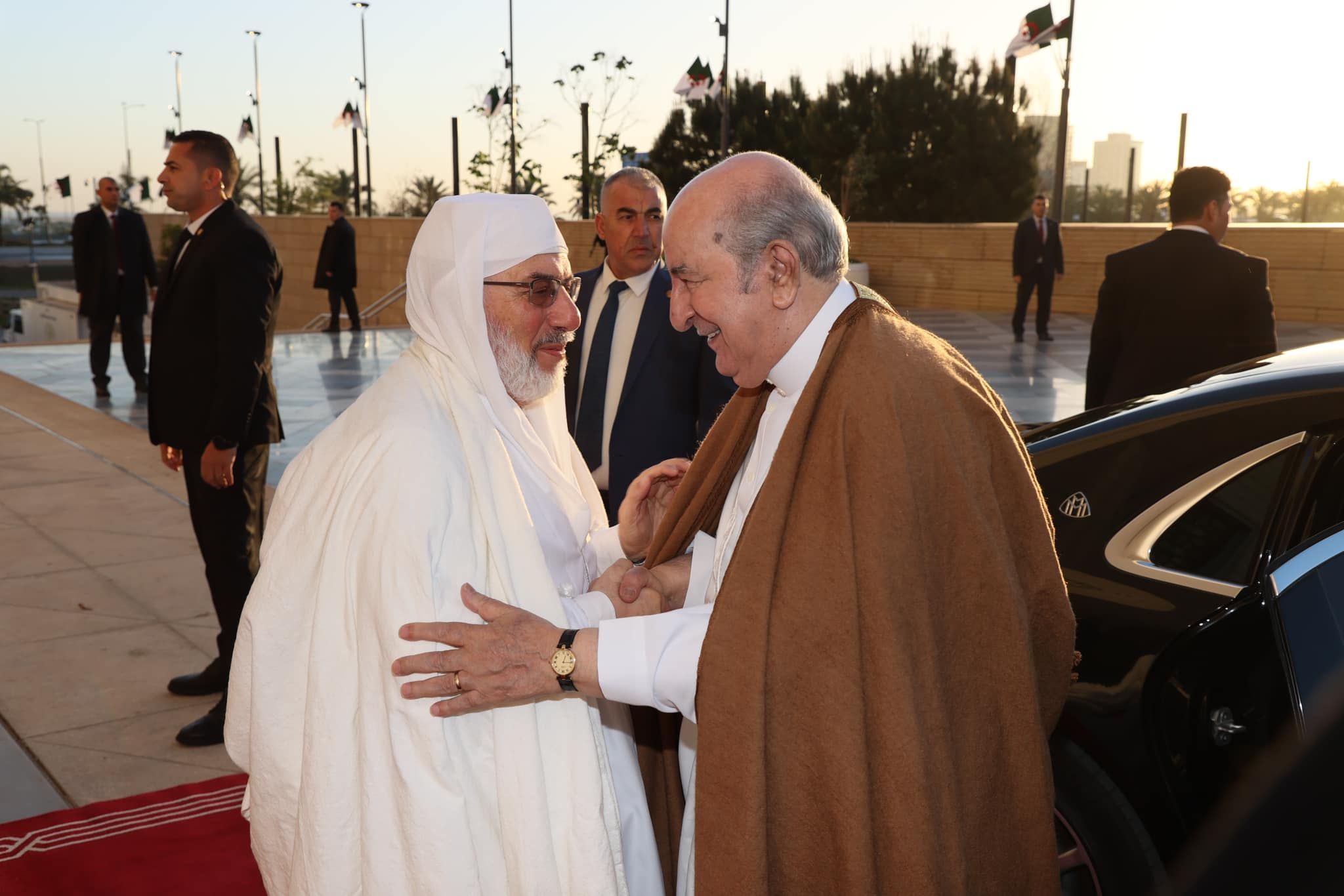 وكان في استقبال الرئيس تبون لدى وصوله كل من عميد جامع الجزائر الشيخ محمد المأمون القاسمي الحسني. ووزير الشؤون الدينية والأوقاف يوسف بلمهدي، والوزير والي ولاية الجزائر عبد النور رابحي.