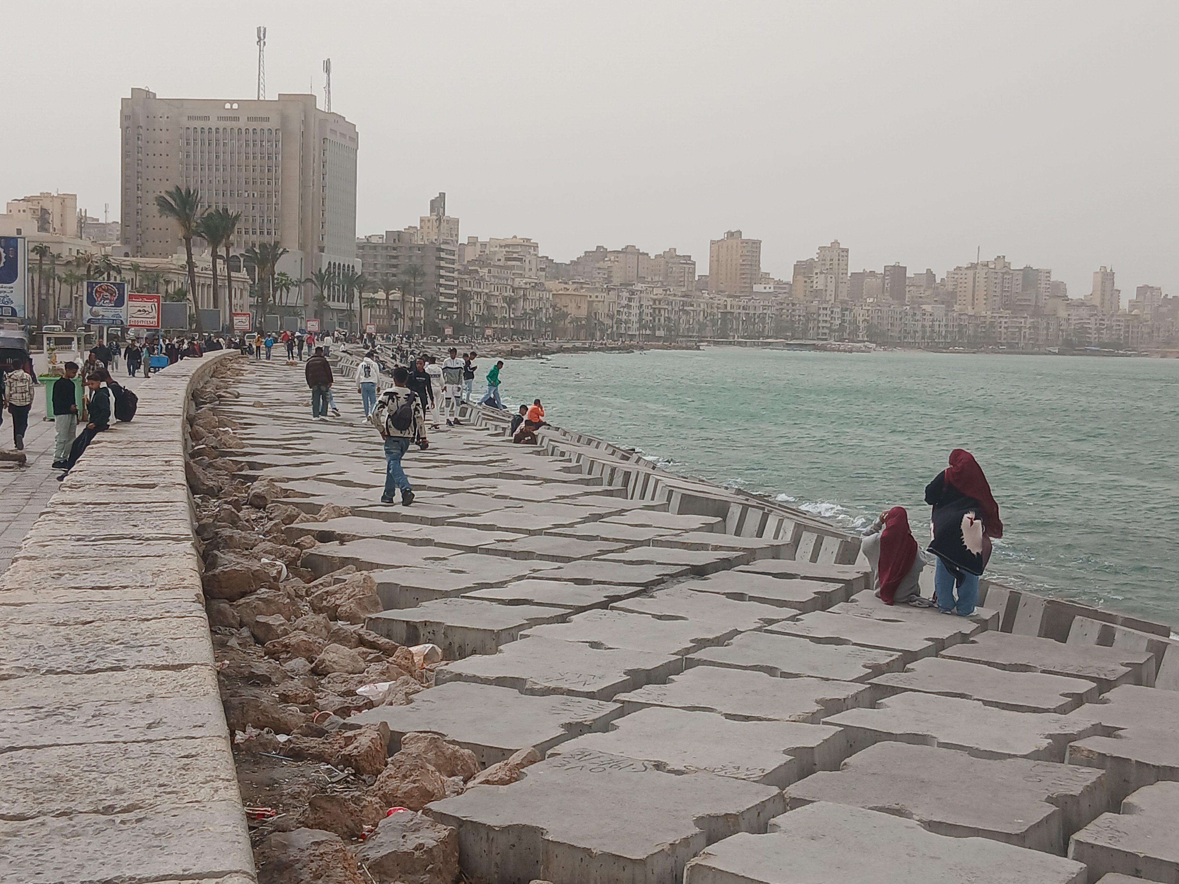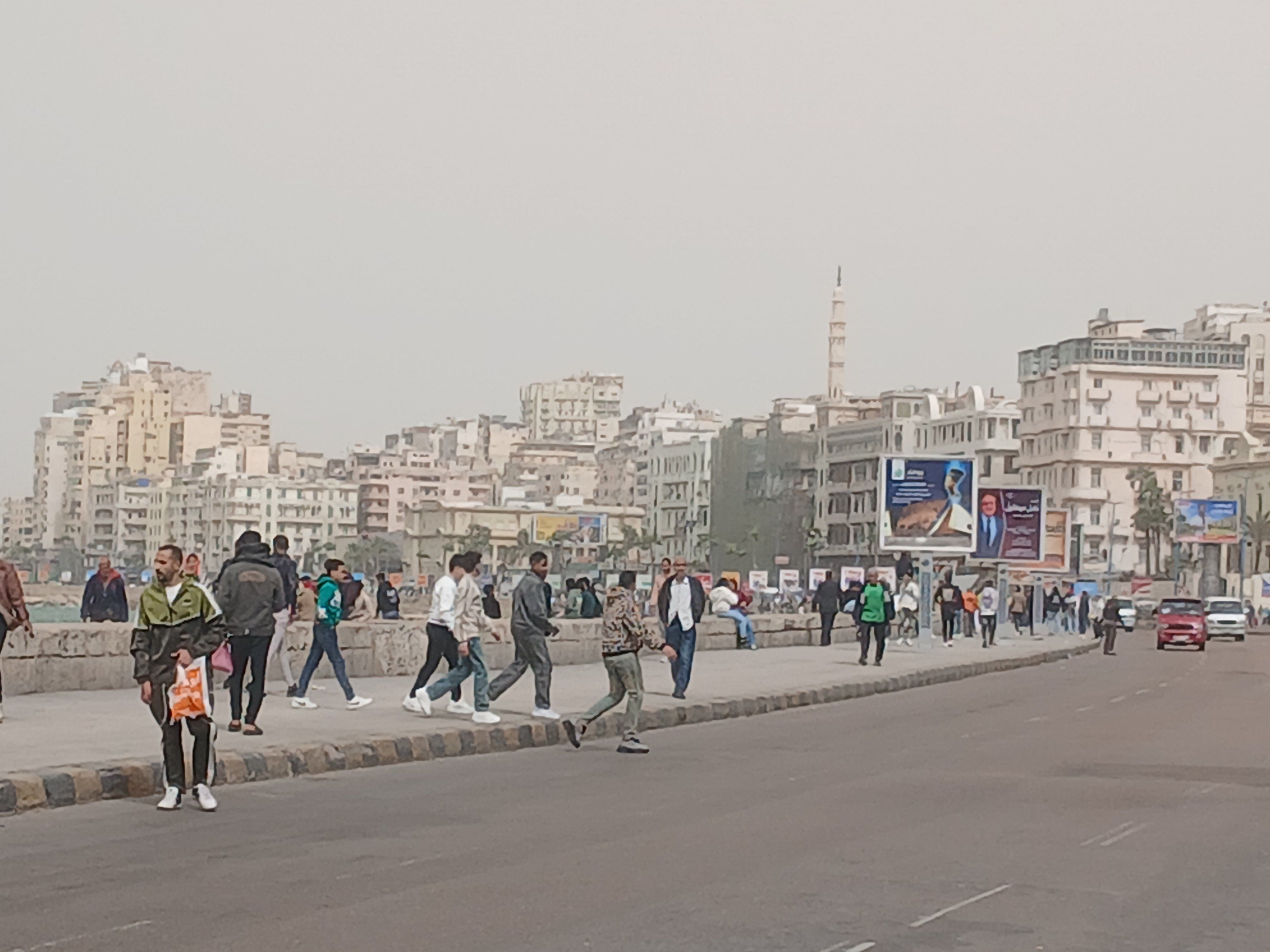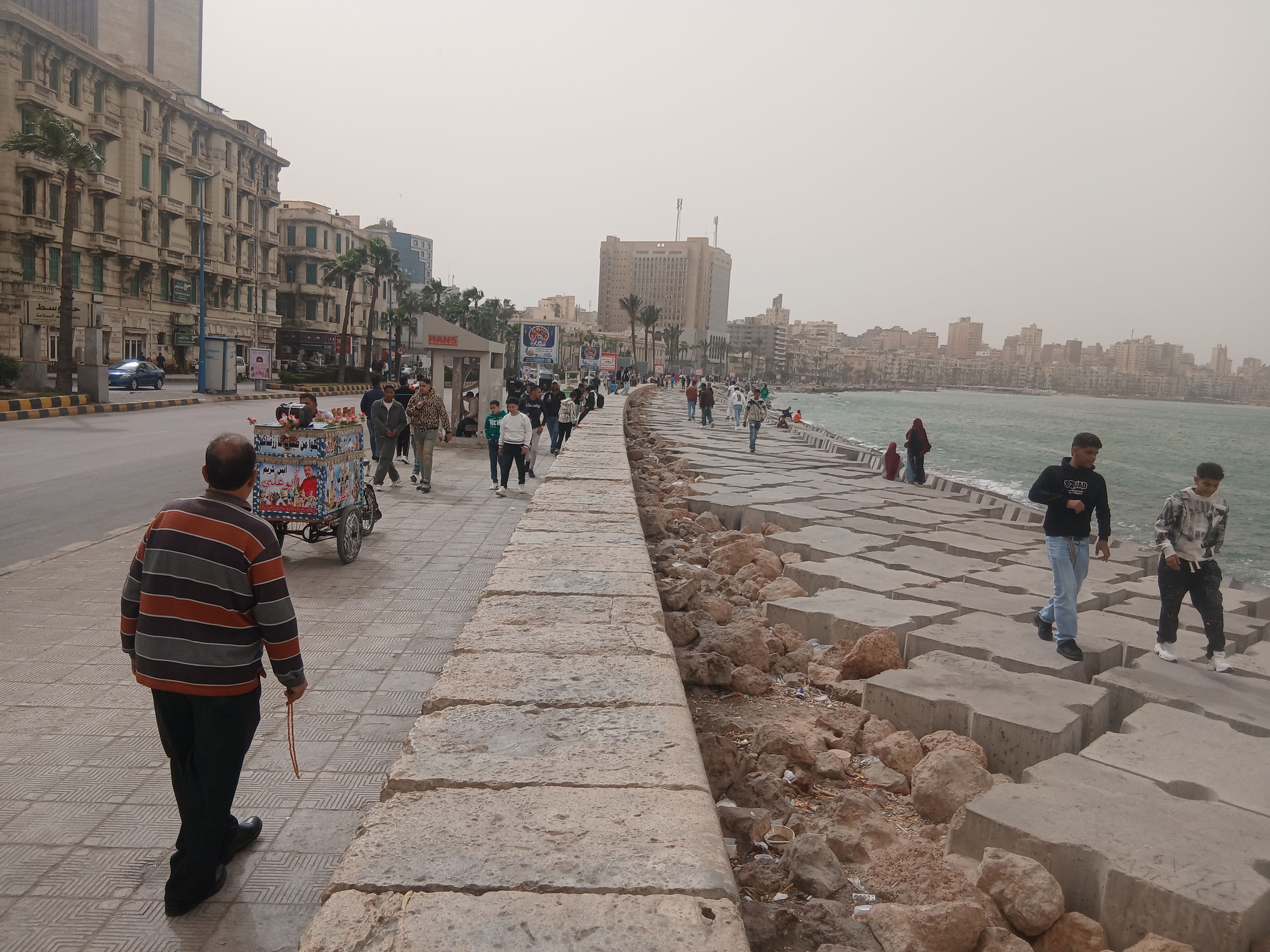المواطنين يستمتعون رغم الرياح والاتربة بالإسكندرية