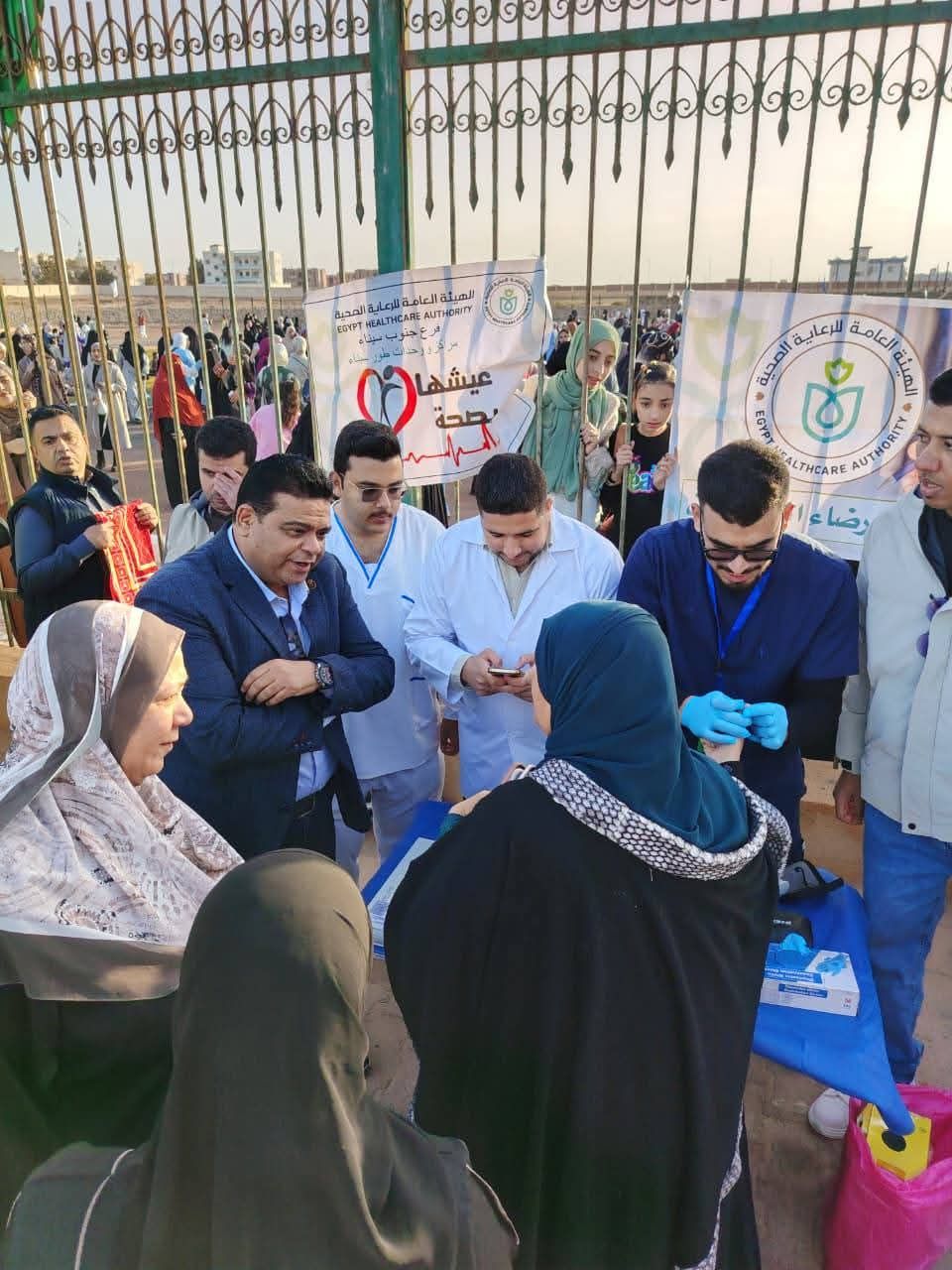 الدكتور محمد عبد الهادي مدير فرع الهيئة العامة للرعاية الصحية بجنوب سيناء اثناء تفقد الفرق الطبية