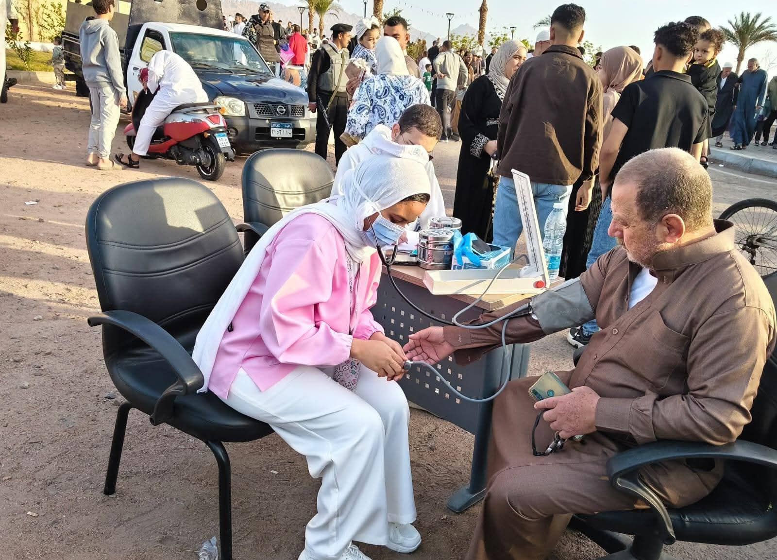 الكشف على كبار السن اثناء الاحتفال بعيد الفطر المبارك بالميادين بطور سيناء