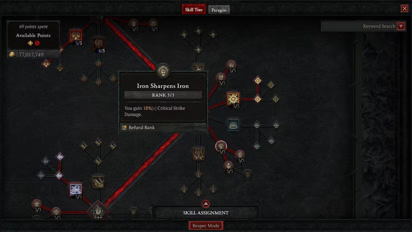 جدول المهارات السلبية في بناء Zeal Paladin في لعبة Diablo 4