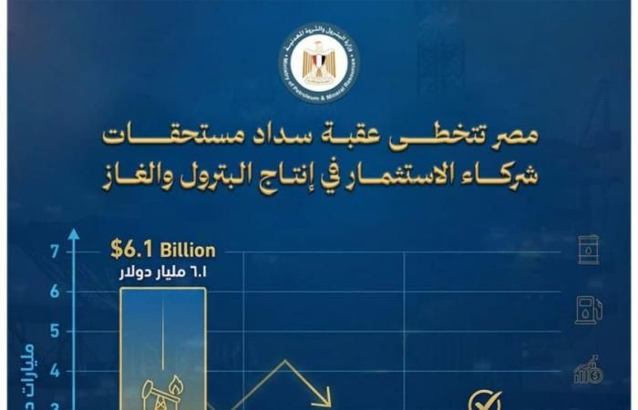 وقال المهندس كريم بدوي، وزير البترول والثروة المعدنية، إن الوزارة نجحت في خفض مستحقات الشركاء الأجانب بشكل تدريجي من نحو 6.1 مليار دولار في يونيو 2024 إلى نحو 1.3 مليار دولار حاليًا، مع خطة واضحة للانتهاء الكامل من هذه المستحقات بحلول منتصف العام الجاري، بالتوازي مع الالتزام بسداد المستحقات الشهرية بانتظام.