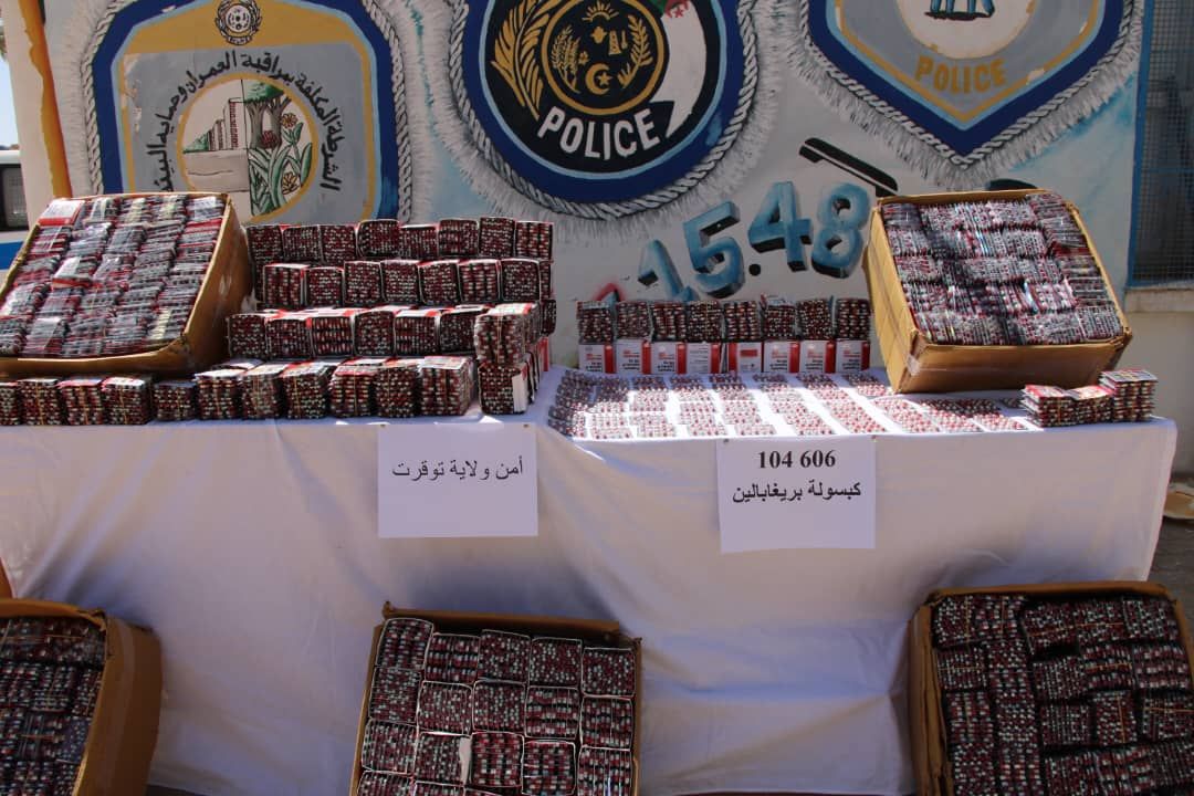 تمكنت عناصر المصلحة الولائية للشرطة القضائية بأمن ولاية توقرت، في اليومين الأخيرين، من توقيف ثلاثة أشخاص في العقدين الرابع والخامس من العمر. ومعالجة قضية حيازة ونقل مؤثرات عقلية بطريقة غير شرعية قصد البيع في إطار جماعة إجرامية منظمة. التهريب على درجة من الخطورة تهدد الاقتصاد الوطني والصحة العمومية لمؤثرات عقلية ذات منشأ أجنبي باستعمال مركبة ذات محرك.