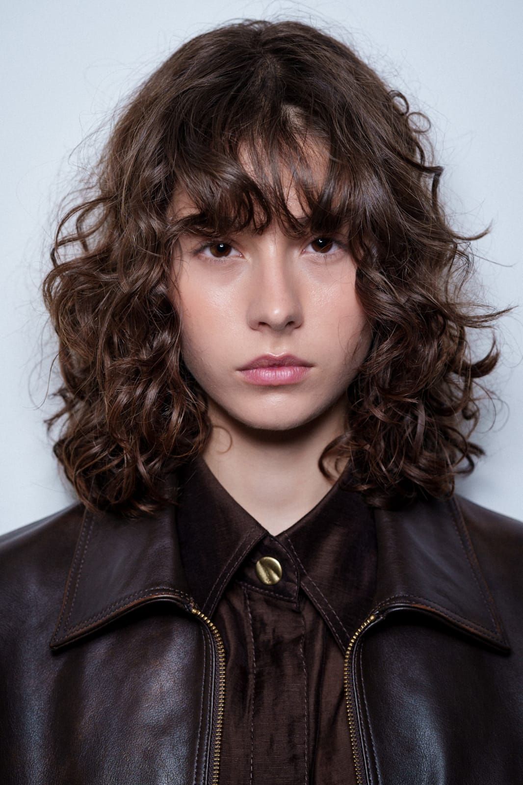 الشعر القصير المجعد مع غرة فوضوية
