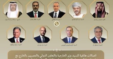 جرت اتصالات هاتفية بين د. بدر عبد العاطي وزير الخارجية والتعاون الدولي والمصريين بالخارج، وكل من الشيخ عبد الله بن زايد نائب رئيس الوزراء ووزير خارجية الإمارات، والأمير فيصل بن فرحان وزير خارجية المملكة العربية السعودية الشقيقة، وبدر البوسعيدي وزير خارجية سلطنة عُمان الشقيقة، وهاكان فيدان وزير خارجية الجمهورية التركية، وإسحاق دار نائب رئيس الوزراء ووزير خارجية جمهورية باكستان الإسلامية، وجان نويل بارو وزير خارجية الجمهورية الفرنسية، وكونستانتينوس كومبوس وزير خارجية قبرص، بالإضافة إلى ستيف ويتكوف المبعوث الأمريكي الخاص للشرق الأوسط، يوم امس الاثنين.