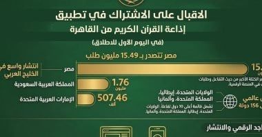 الثلاثاء، 24 مارس 2026 02:03 ماحتل موقع وتطبيق إذاعة القرآن الكريم من القاهرة المركز الأول وتصدر الـ #Top App Store في الأكثر بحثاً ومطالعة وتحميلا ًعلى جوجل بلاي، ليصبح الأعلى بحثا في مصر لخمسة أيام متواصلة منذ أن أعطى الرئيس عبد الفتاح السيسي رئيس الجمهورية الإذن بانطلاق الموقع والتطبيق خلال احتفالات ليلة القدر.