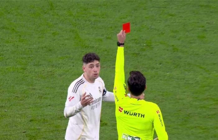 وشهدت المباراة حصول فيدي فالفيردي، لاعب ريال مدريد، على بطاقة حمراء في الدقيقة 77 بعد تدخله على أليكس باينا بقوة من الخلف.