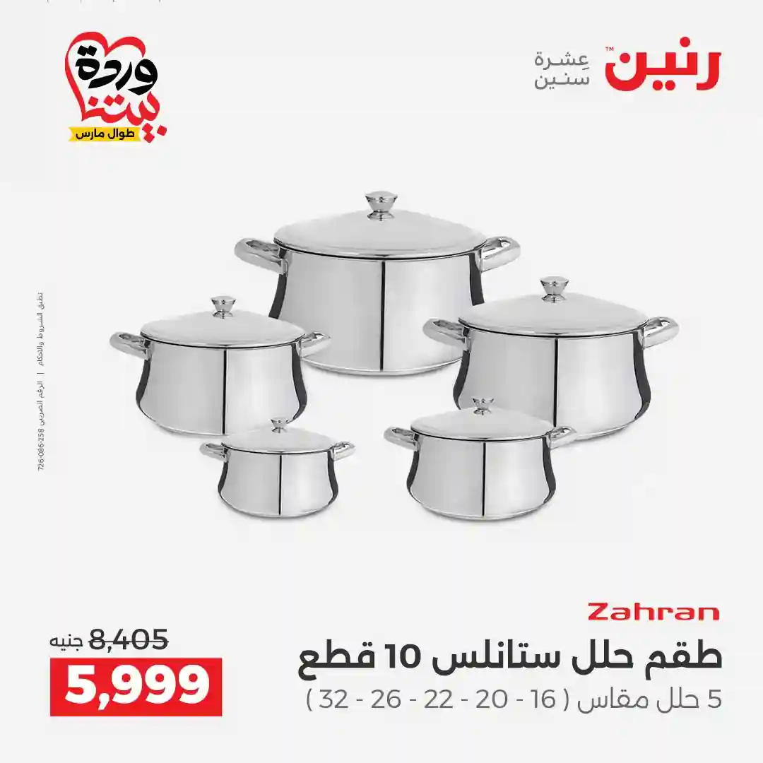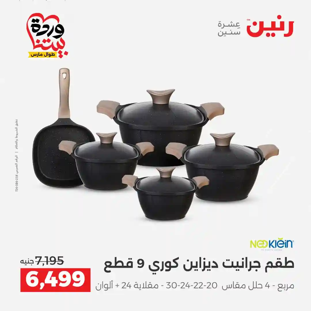 تسرى عروض رنين من يوم الخميس للسبت 26 – 27 – 28 مارس 2026 للادوات المنزلية بجميع الفروع