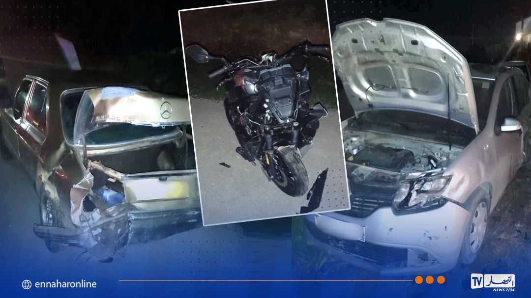 وحسب الحماية المدنية تدخلت على الساعة 20سا24د من أجل حادث اصطدام تسلسلي بين سيارتين ودراجة نارية.