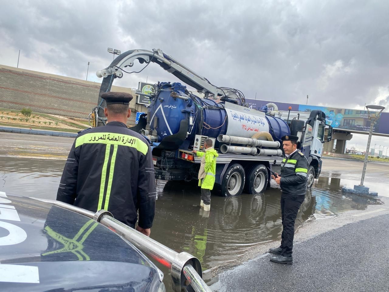 الأربعاء، 25 مارس 2026 01:14 مقامت الإدارة العامة للمرور بالدفع بسيارات الإغاثة المرورية والأوناش والدراجات النارية على كافة الطرق، لتسهيل حركة المرور والتنسيق مع الجهات المعنية لإرسال سيارات شفط في أماكن تجمعات المياه تحت إشراف اللواء دكتور علاء فتح الله مدير الإدارة العامة للمرور، وذلك في ضوء ما تشهده البلاد من ظروف مناخية غير مستقرة وتحذيرات بسقوط أمطار غزيرة، وتنفيذا لتوجهات وزير الدخلية تواجدت الخدمات على كافة الطرق لتسيير حركة السيارات ومنع ظهور أى معوقات مرورية.