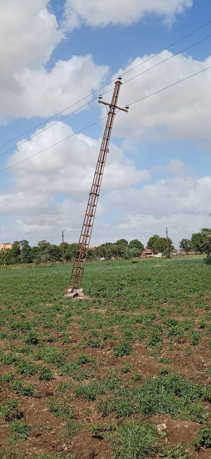 الأربعاء، 25 مارس 2026 05:00 مشهدت عزبة حسن حسنى بمنطقة كوبرى بيومى التابعة لمركز طامية بمحافظة الفيوم، واقعة خطيرة بعد أن تسببت الرياح العاتية وسوء الأحوال الجوية فى ميل أحد أعمدة التيار الكهربائى العالى بشكل ملحوظ، ما جعله مهددًا بالسقوط فى أى لحظة، وسط حالة من القلق بين الأهالى.