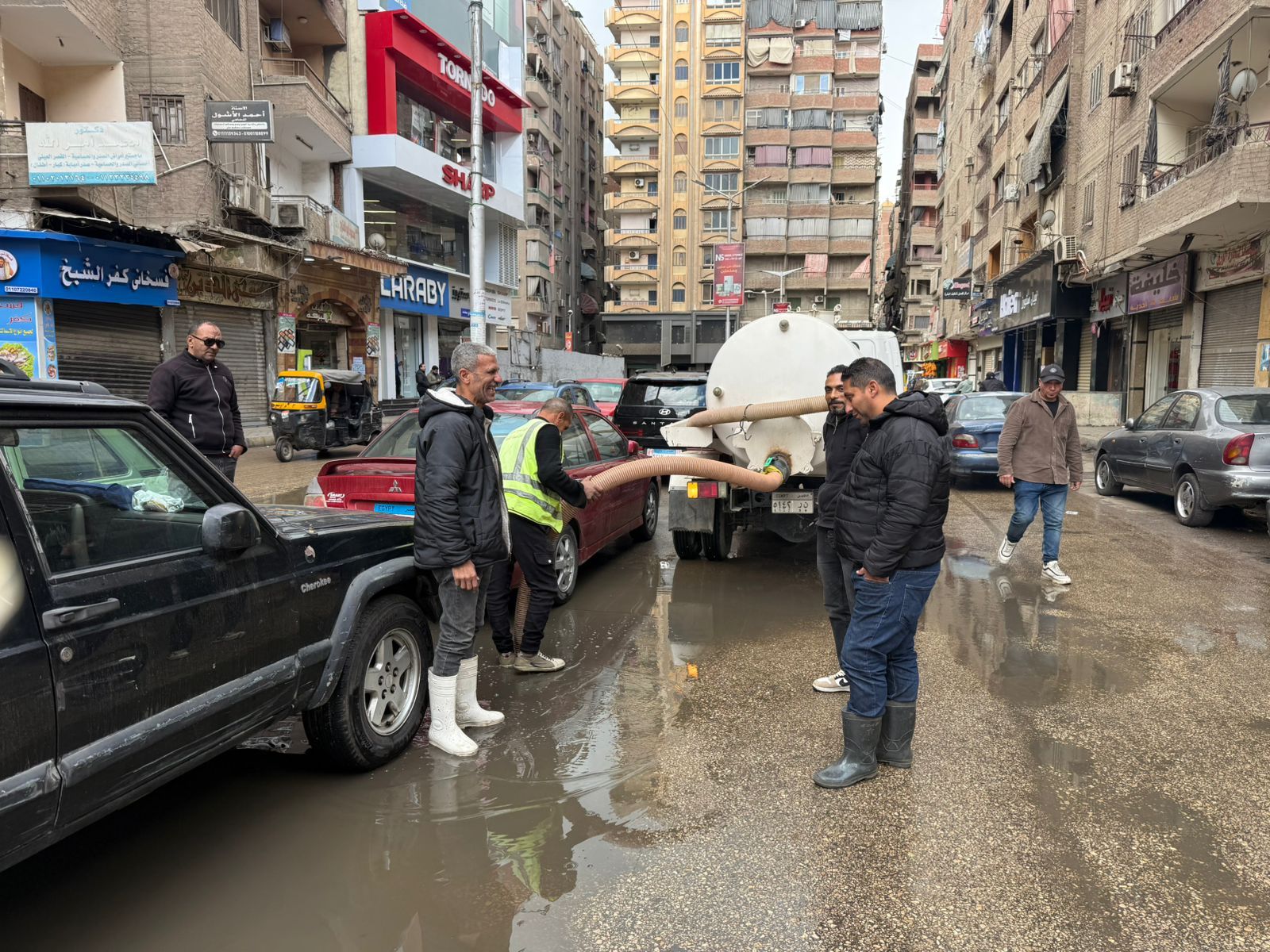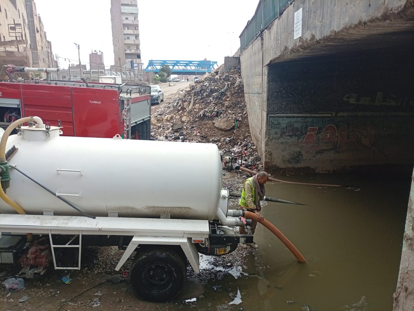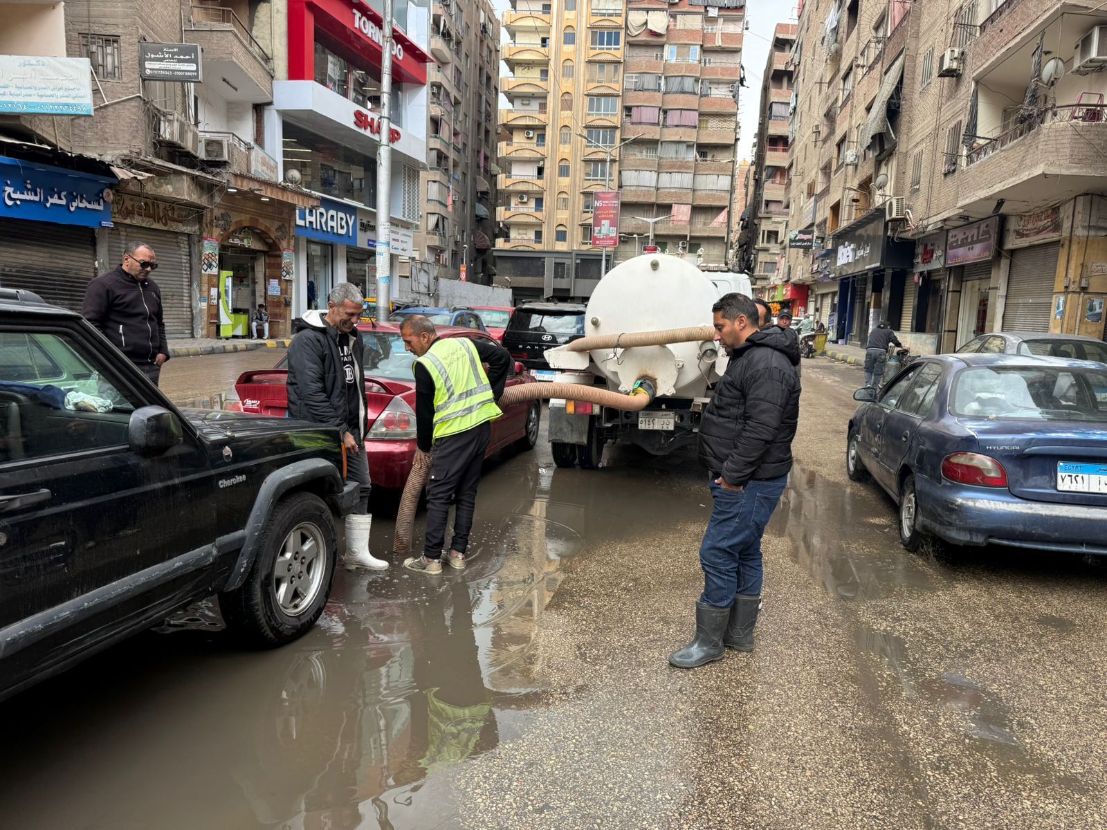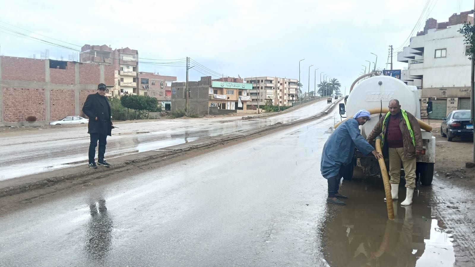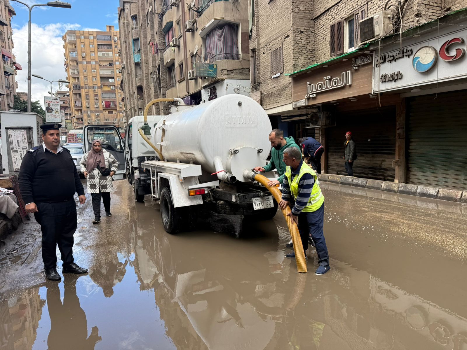 قام رجال الحماية المدنية بعمليات سحب وتصفية لمياه الأمطار التى ظهرت بعدد من الشوارع وميادين محافظة الجيزة وببعض المحاور للعمل على إزالة المياه وإعادة الحركة المرورية لطبيعتها مرة أخرى وحفاظا على أرواح المواطنين، حيث يتم سحب المياه من جميع الأماكن التى يتم رصدها لمنع الحوادث.