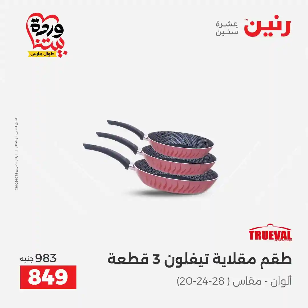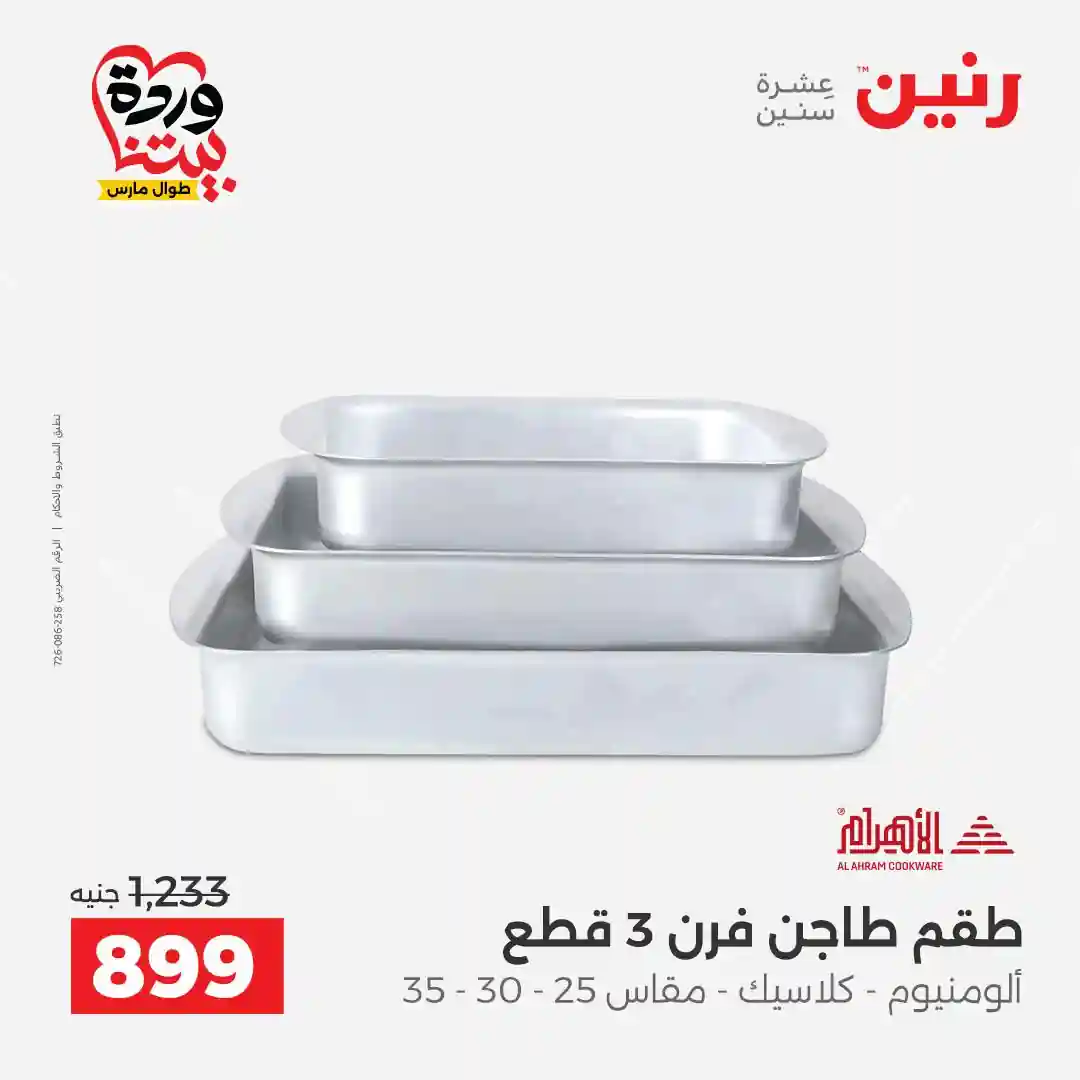 تسرى عروض رنين من يوم الجمعة والسبت 27 و 28 مارس 2026 كملي رفايع مطبخك بجميع الفروع