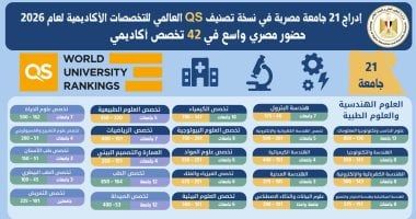 وجاءت نتائج الجامعات المصرية داخل التخصصات العلمية في تصنيف QS لعام 2026 على النحو التالي: